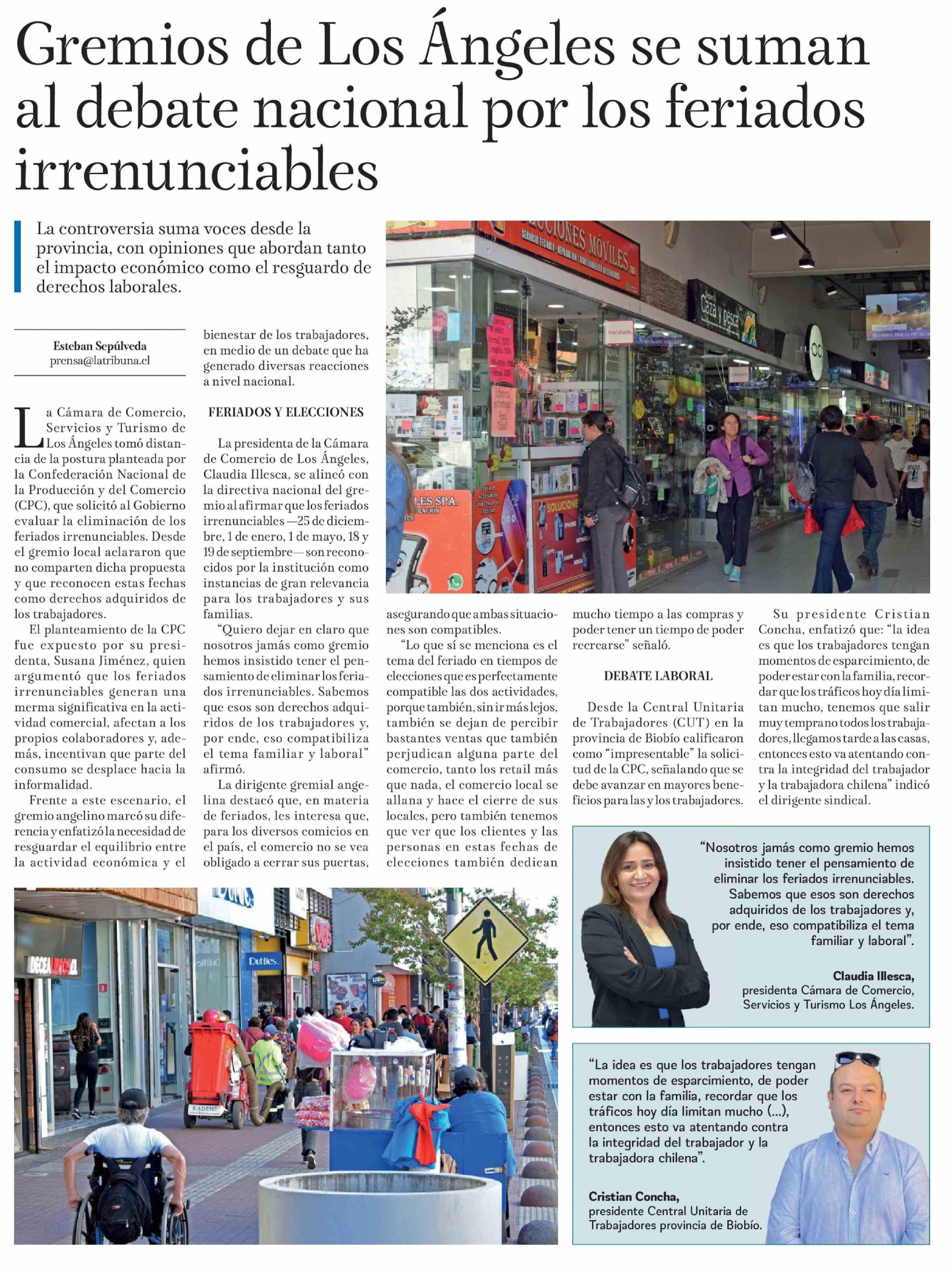 Gremios de Los Ángeles se suman al debate nacional por los feriados irrenunciables