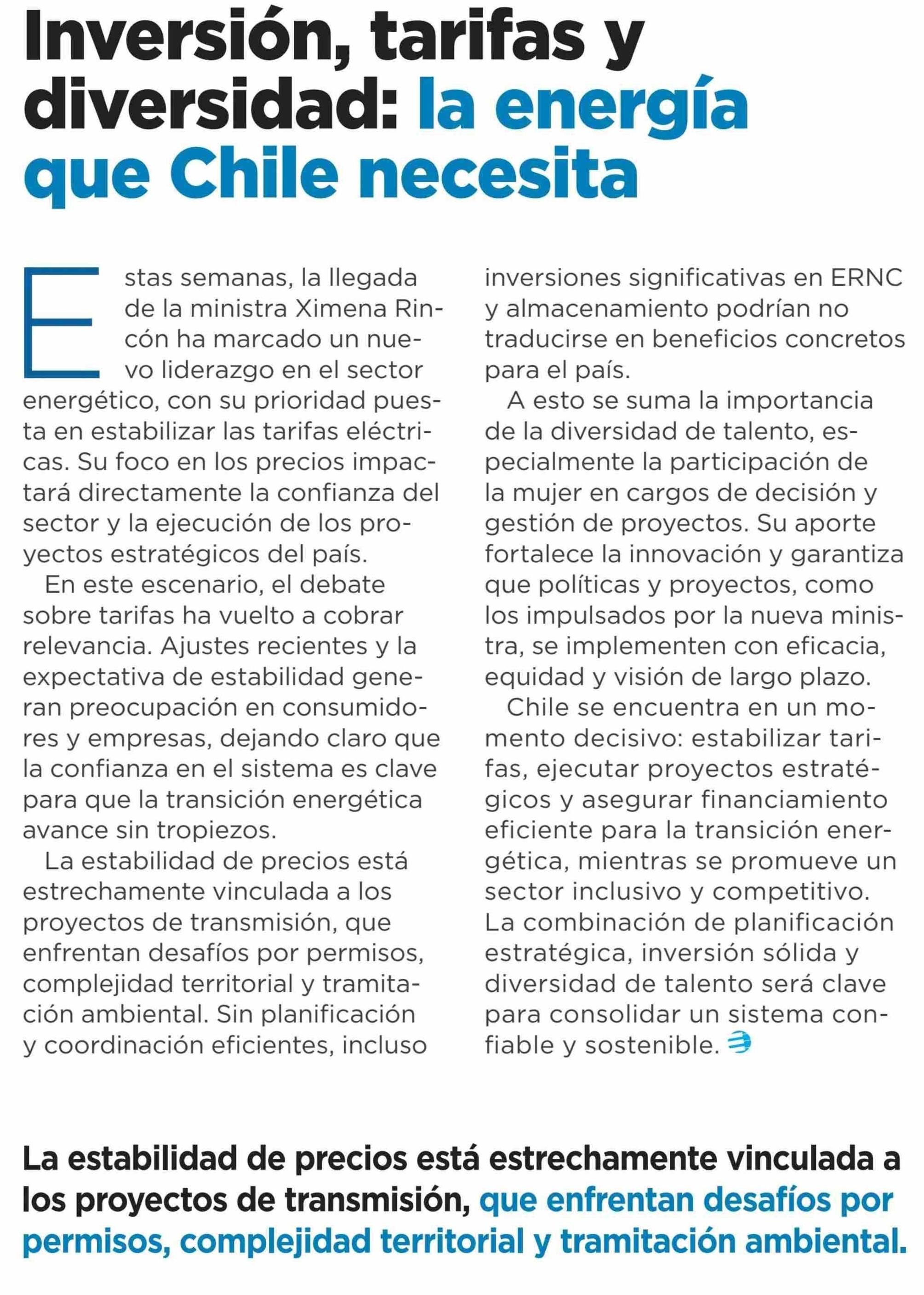 Inversión, tarifas y diversidad: la energía que Chile necesita