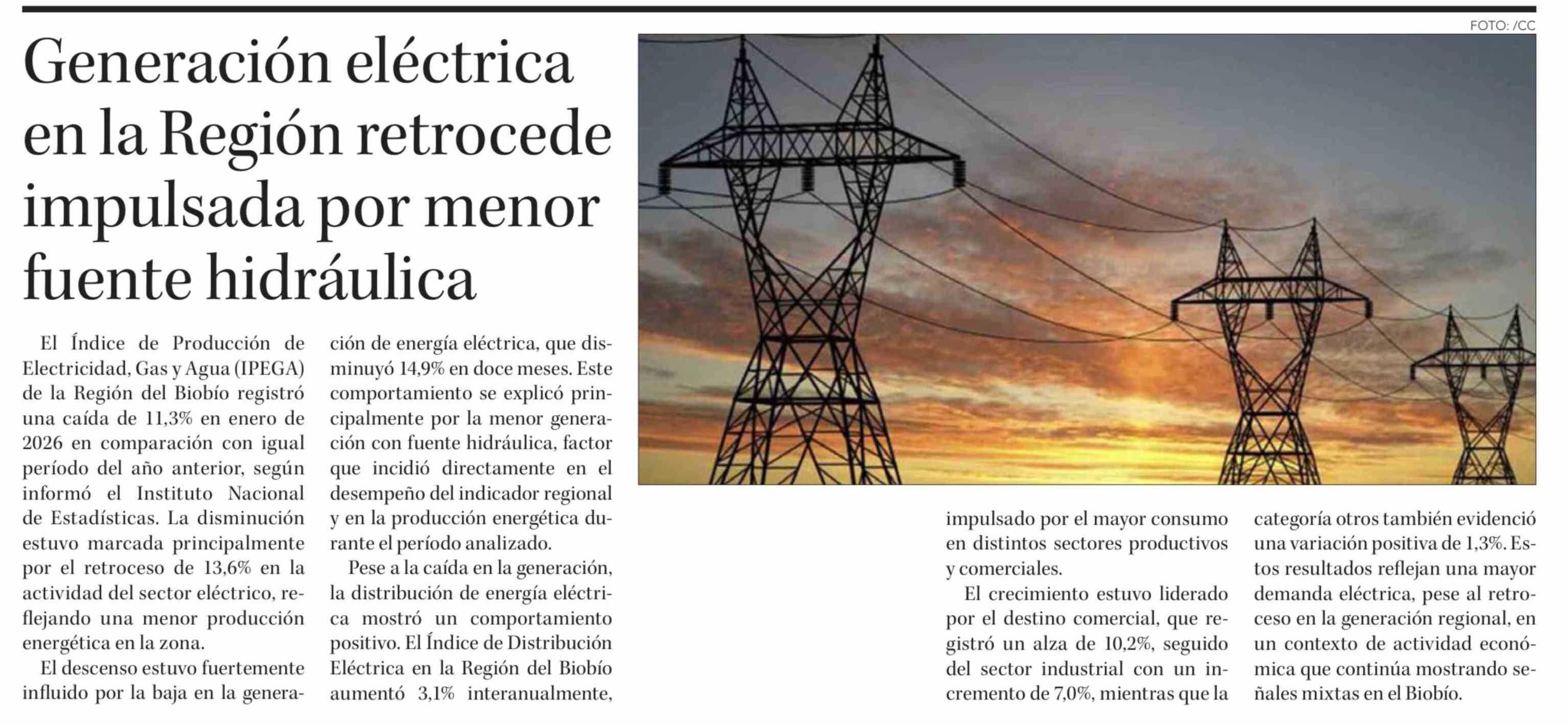 Generación eléctrica en la Región retrocede impulsada por menor fuente hidráulica