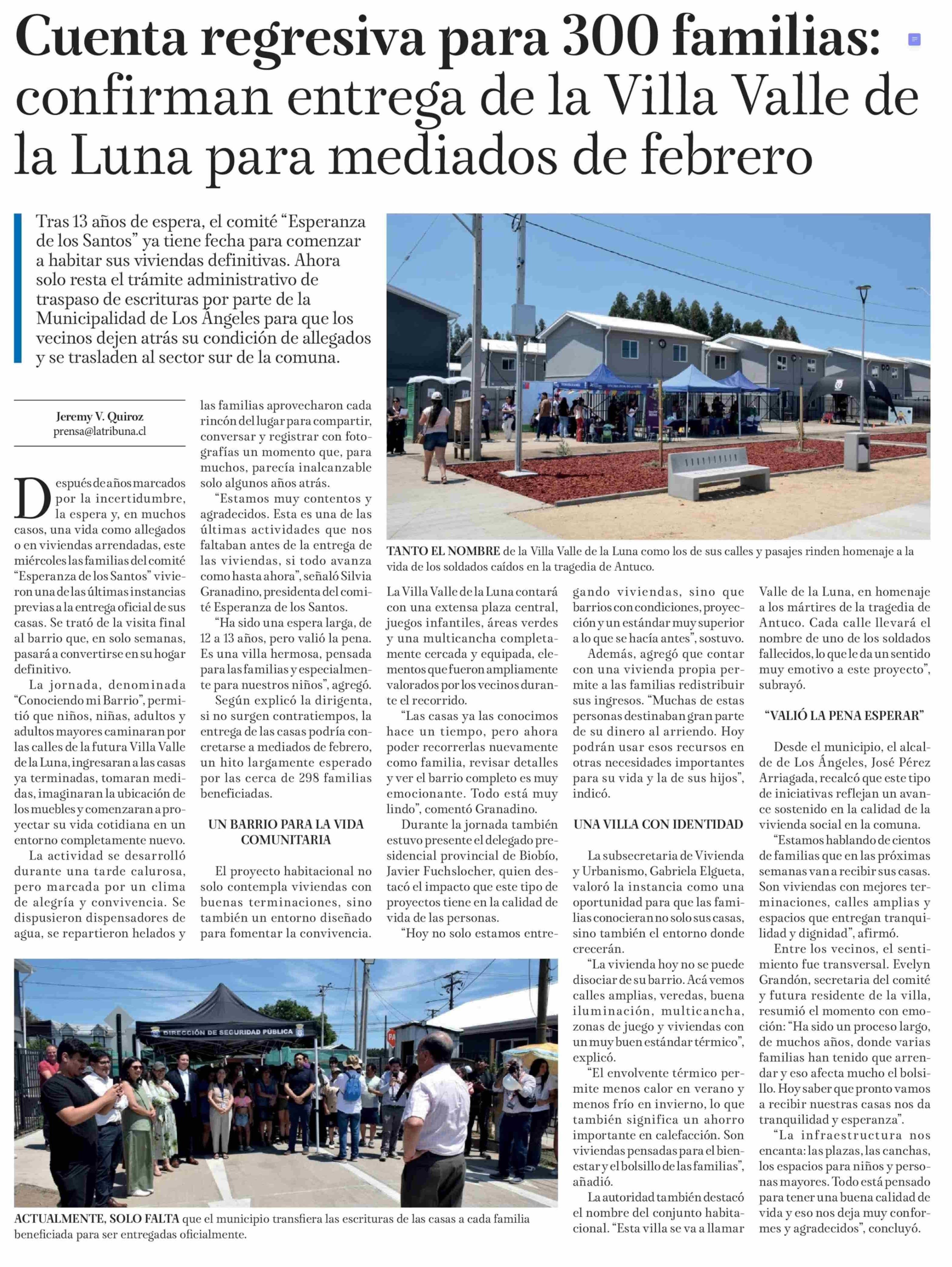 Cuenta regresiva para 300 familias: confirman entrega de la Villa Valle de la Luna para mediados de febrero