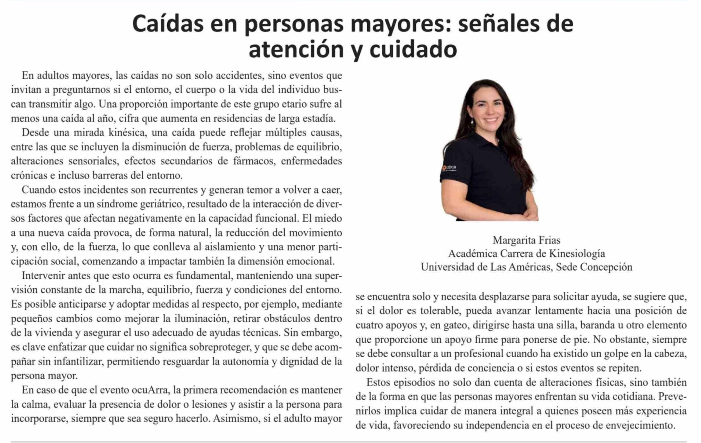Columnas de Opinión: Caídas en personas mayores: señales de atención y cuidado