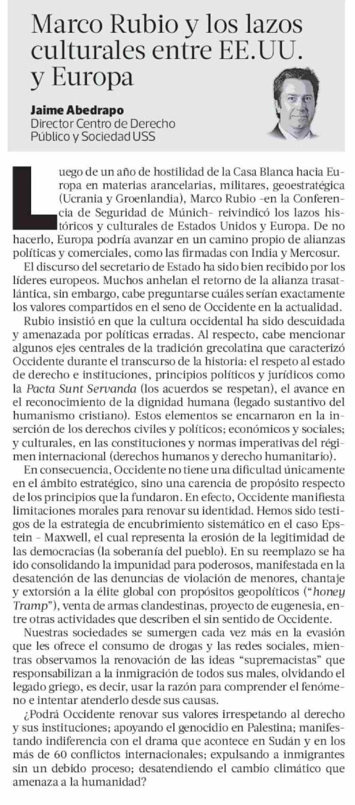 Columnas de Opinión: Marco Rubio y los lazos culturales entre EE.UU. y Europa