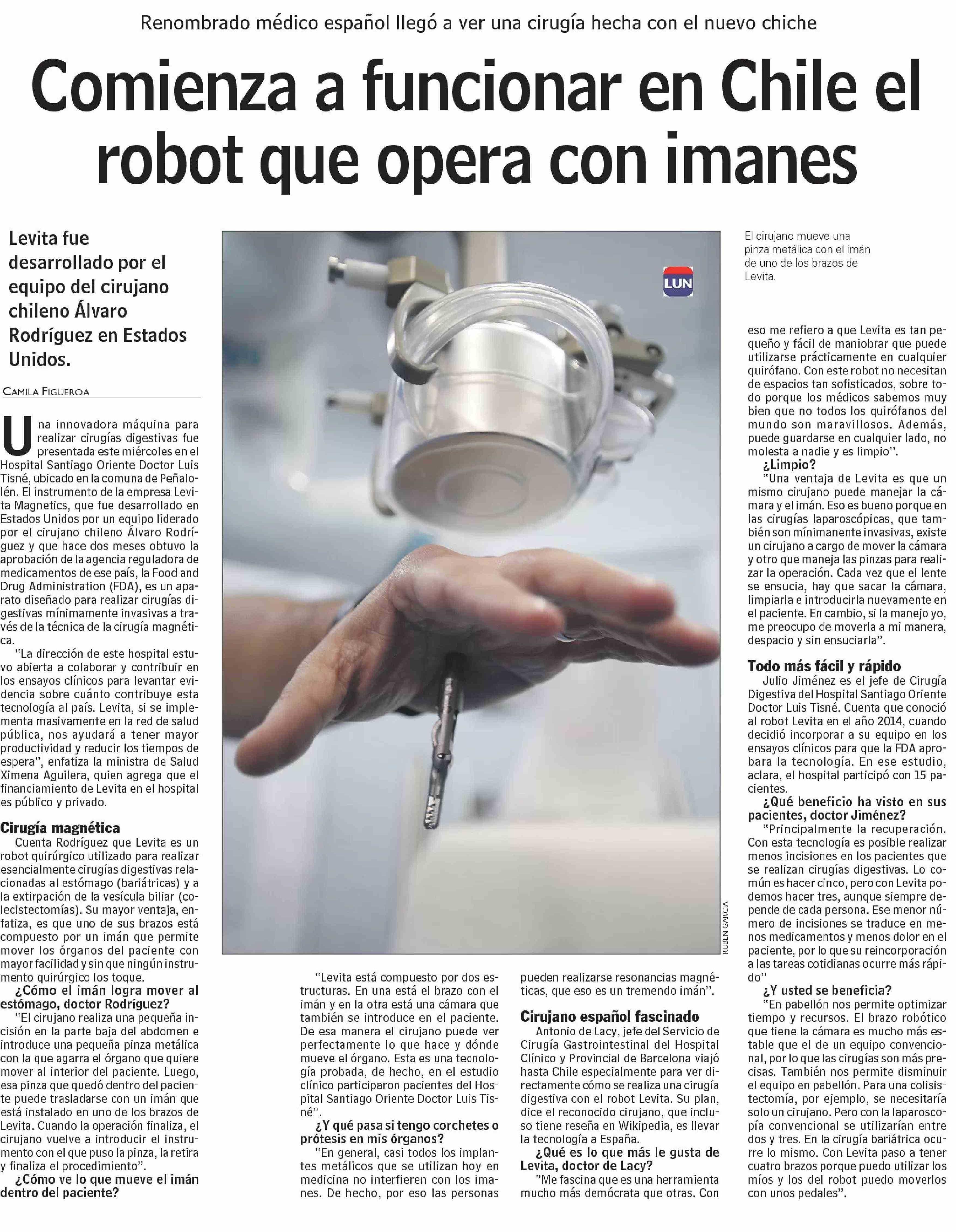 Comienza a funcionar en Chile el robot que opera con imanes