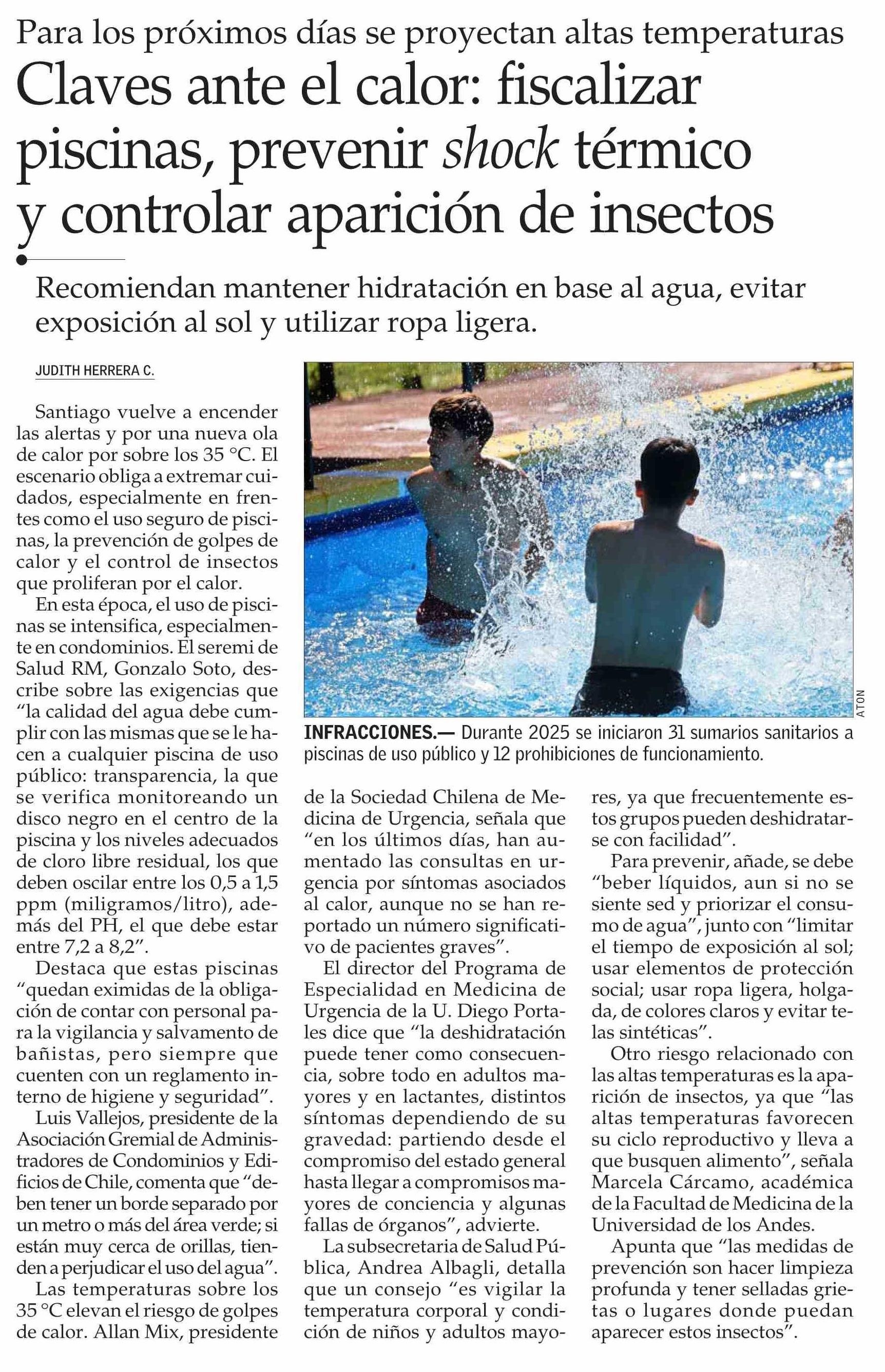 Claves ante el calor: fiscalizar piscinas, prevenir shock térmico y controlar aparición de insectos