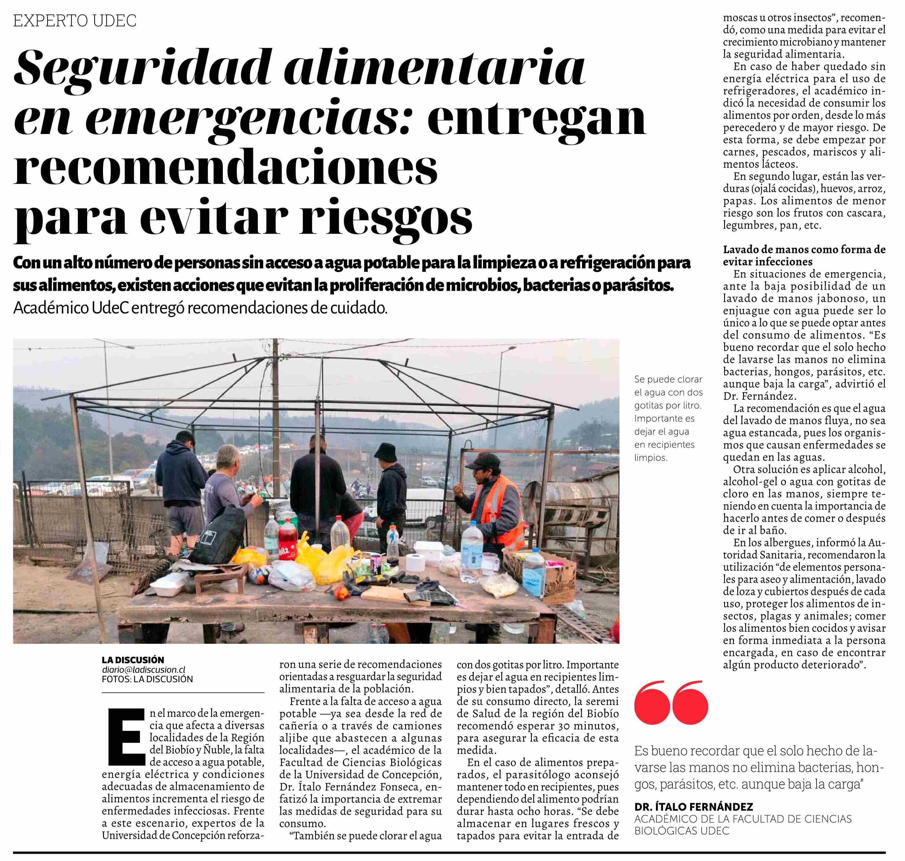 Seguridad alimentaria en emergencias: entregan recomendaciones para evitar riesgos