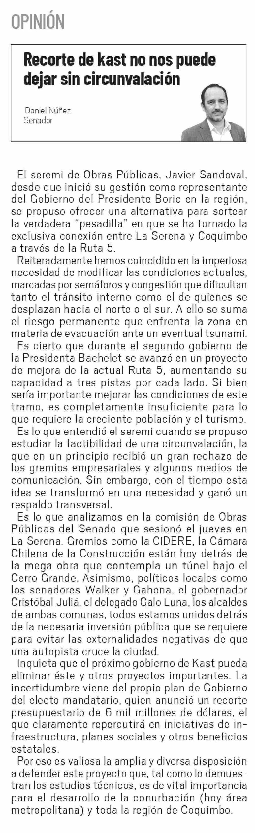 Columnas de Opinión: Recorte de kast no nos puede dejar sin circunvalación