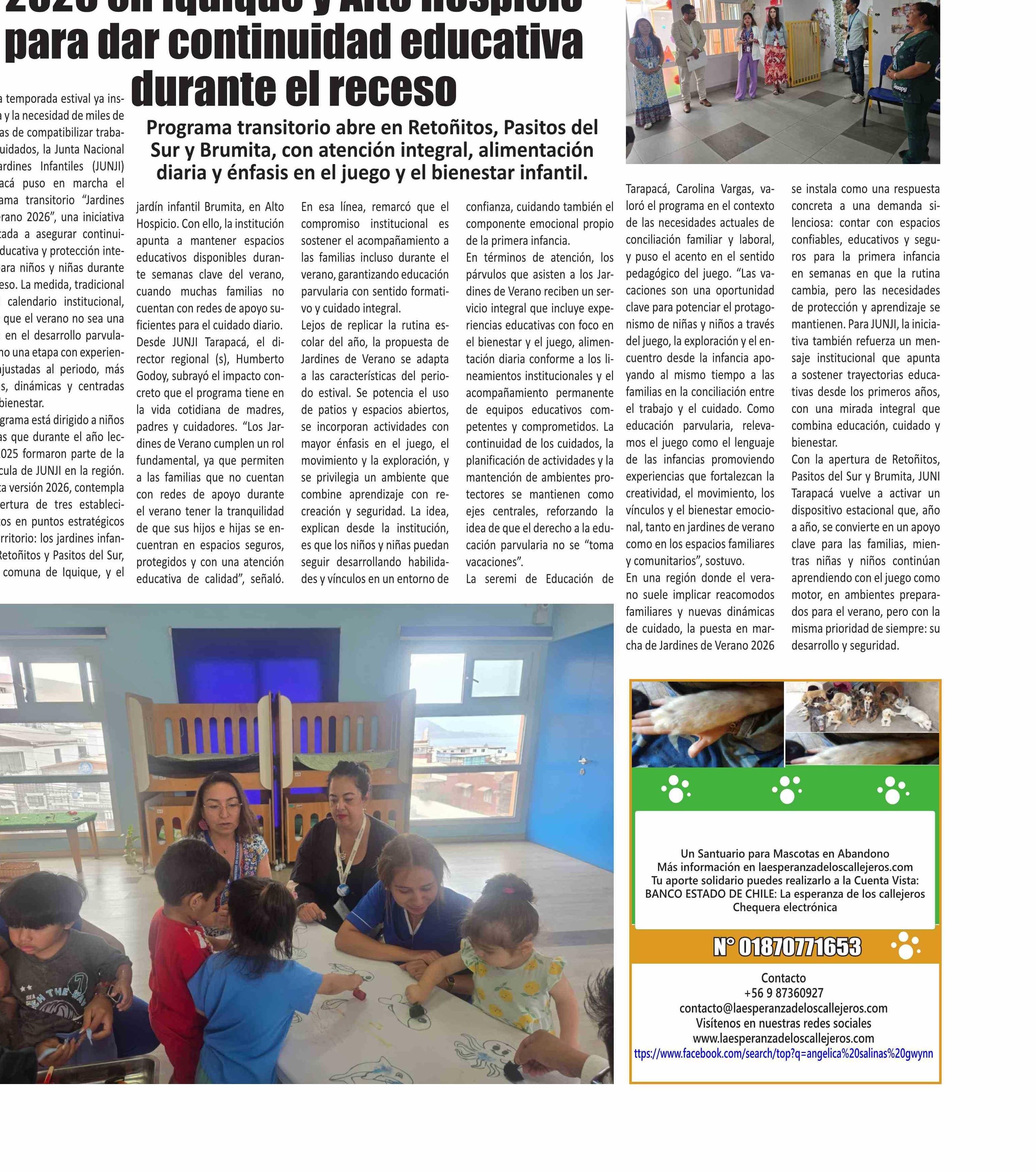 JUNJI activa Jardines de Verano 2026 en Iquique y Alto Hospicio para dar continuidad educativa durante el receso