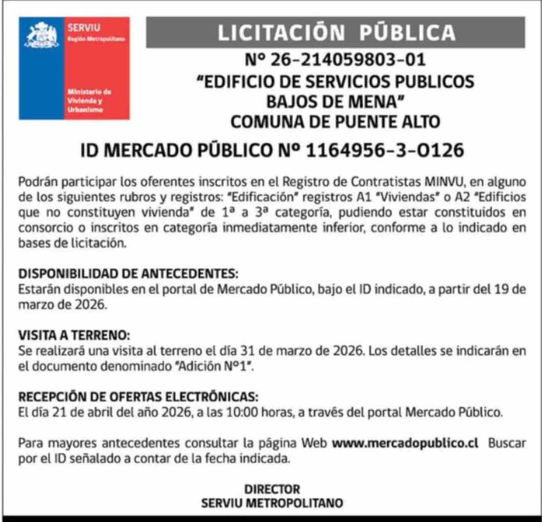 Aviso Licitaciones: SERVIU Region Metropolitana
