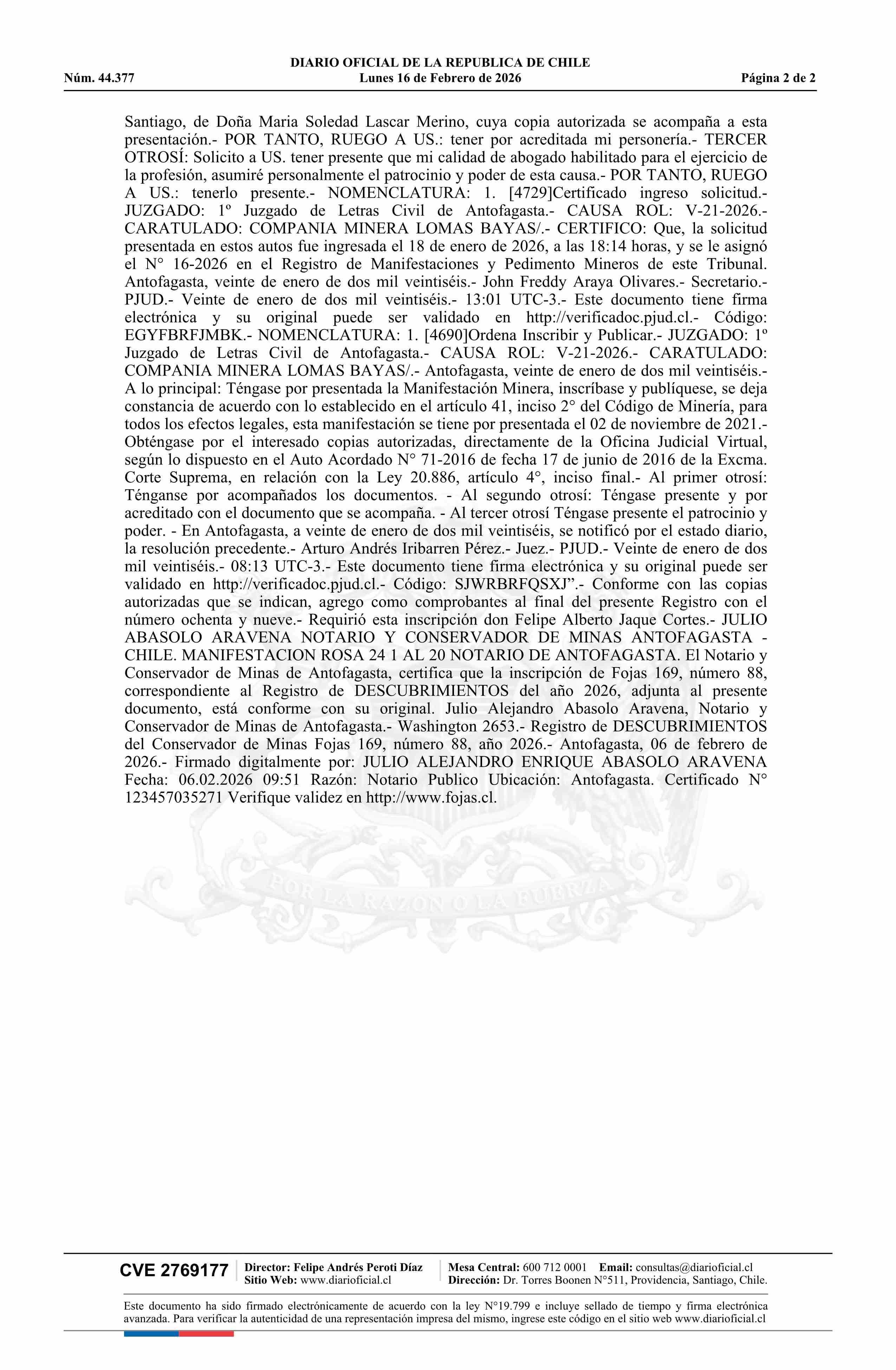 DIARIO OFICIAL CHILE - BOLETÍN OFICIAL DE MINERÍA (DIARIO OFICIAL CHILE – BOM – MANIFESTACIONES MIN)