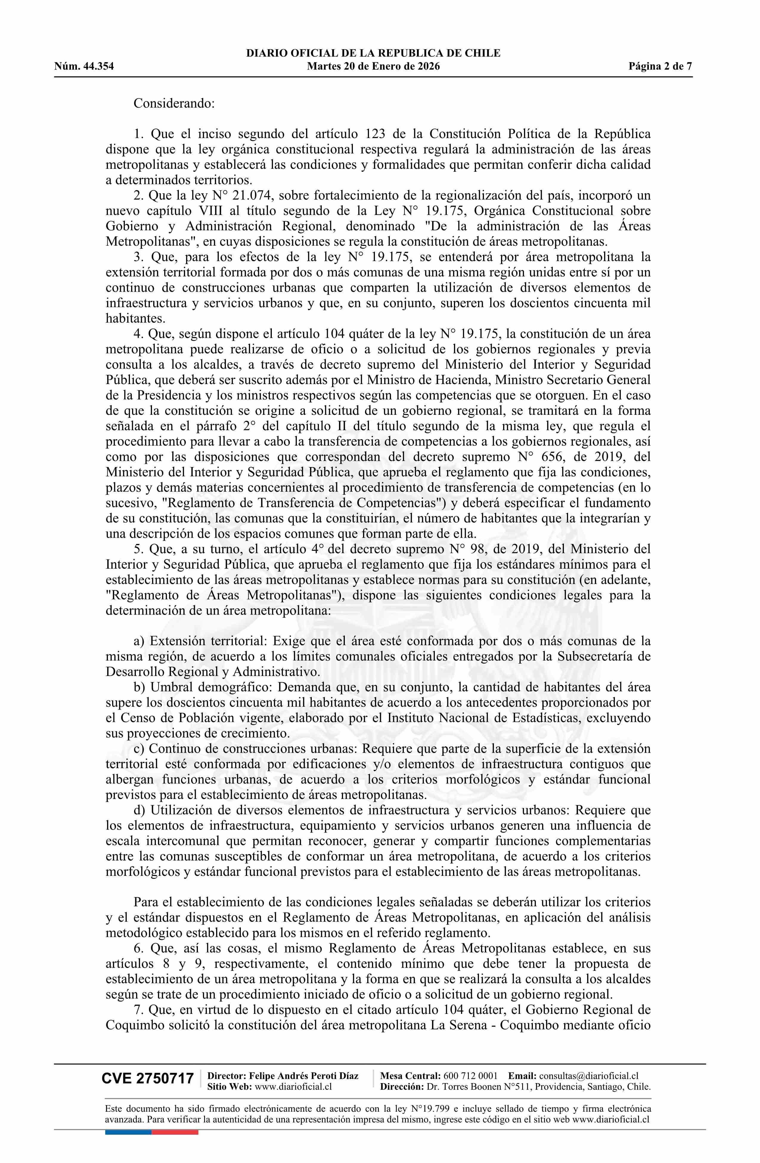 Decreto número 84, de 2025.- Constituye Área Metropolitana La Serena - Coquimbo
