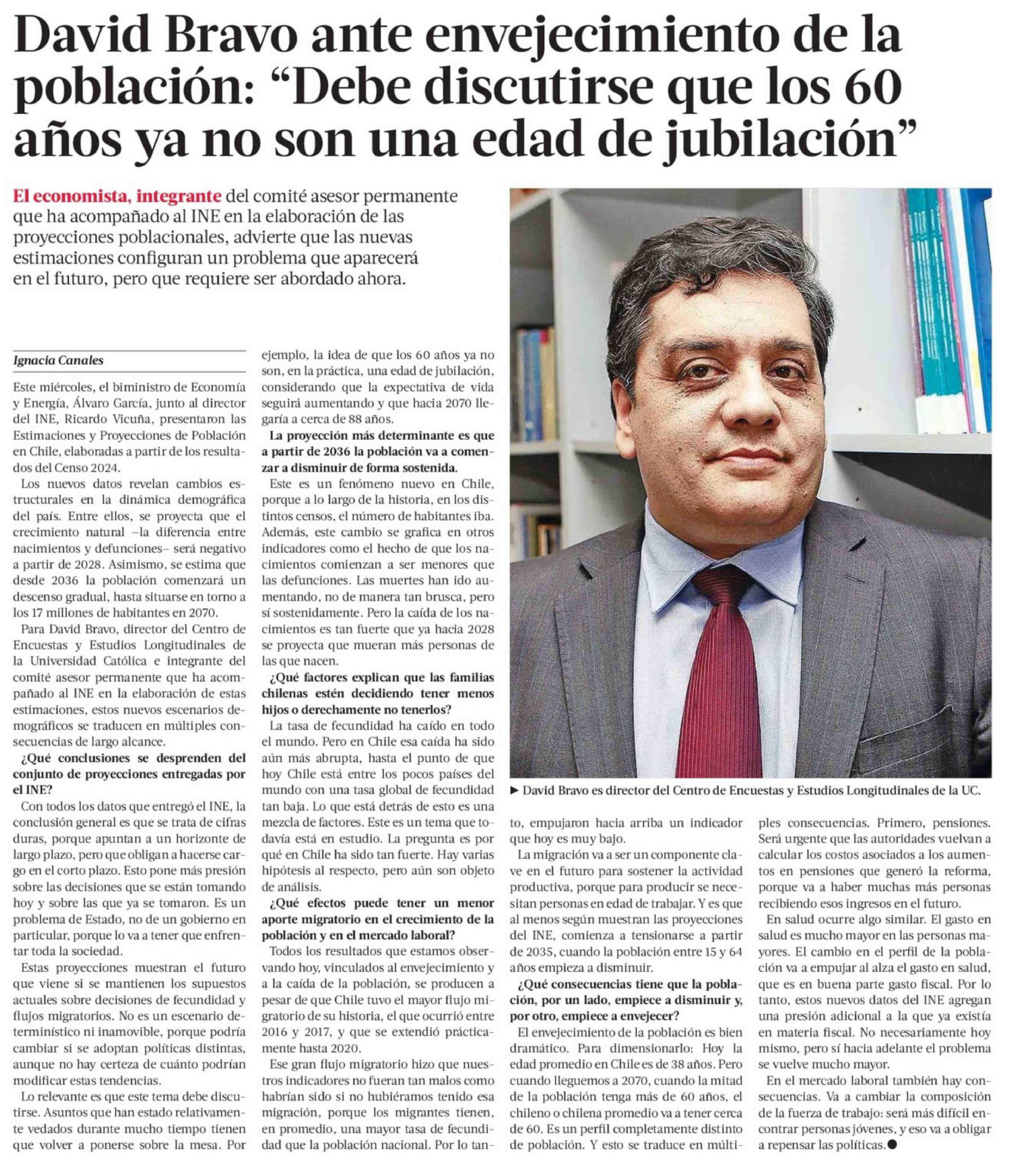 David Bravo ante envejecimiento de la población: "Debe discutirse que los 60 años ya no son una edad de jubilación"