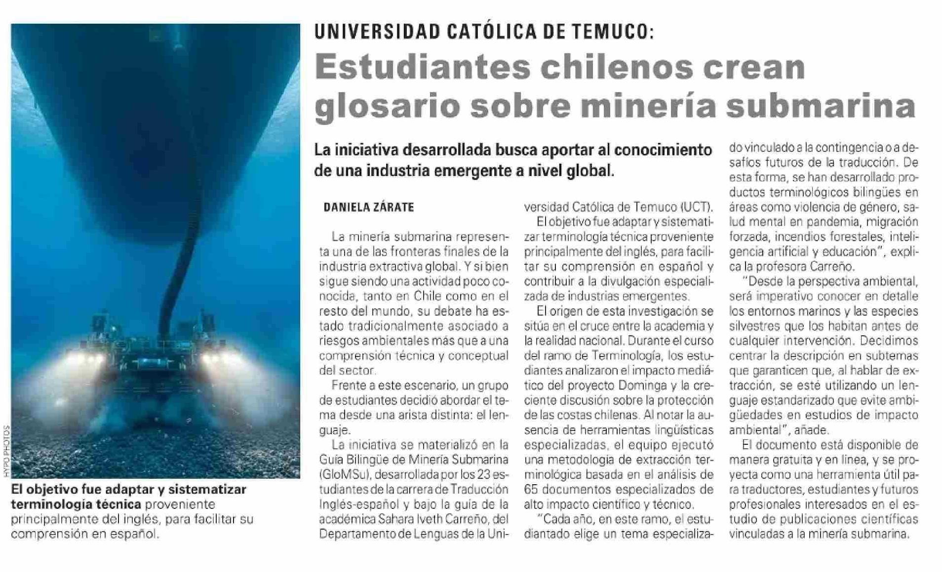 Estudiantes chilenos crean glosario sobre minería submarina