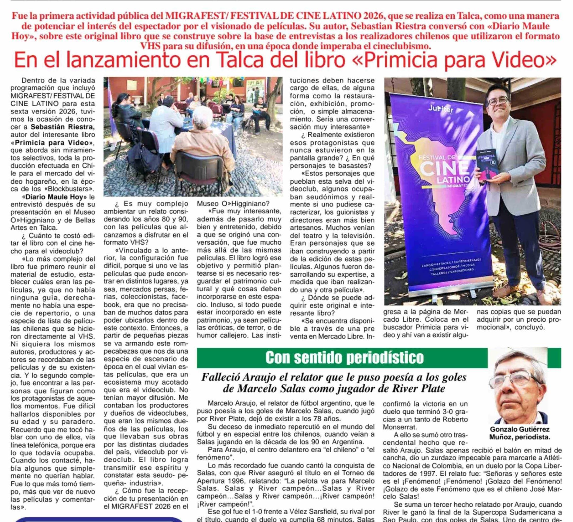 En el lanzamiento en Talca del libro «Primicia para Video»