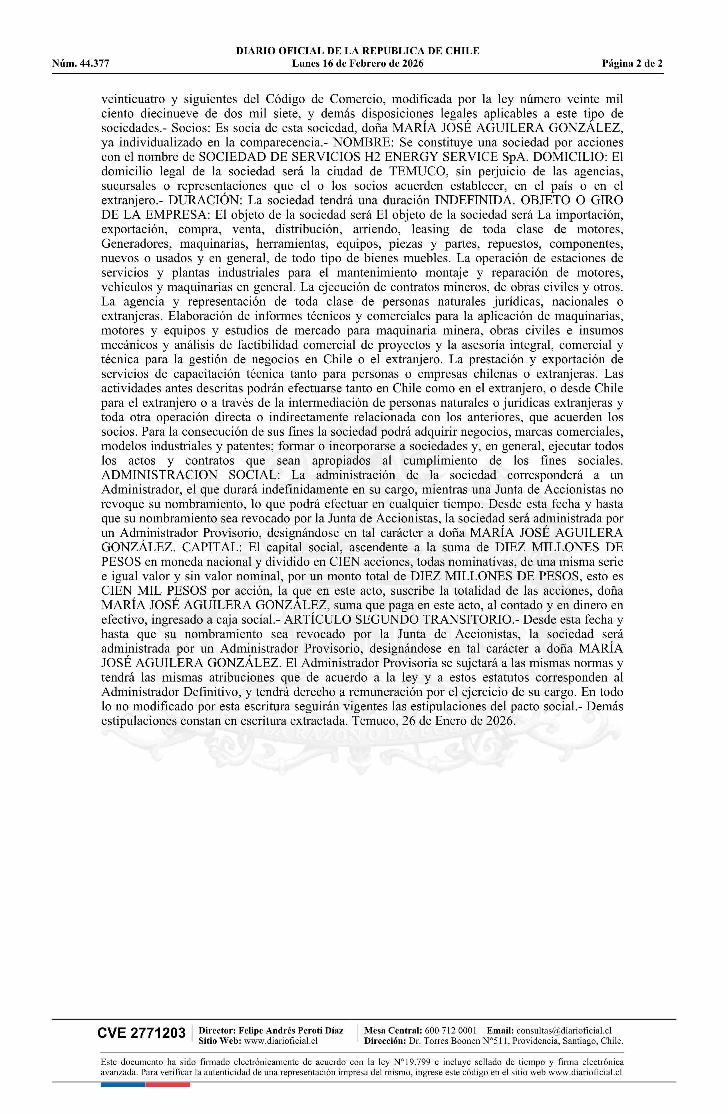 SOCIEDAD DE SERVICIOS H2 ENERGY SERVICES LIMITADA 77.406.305-6*