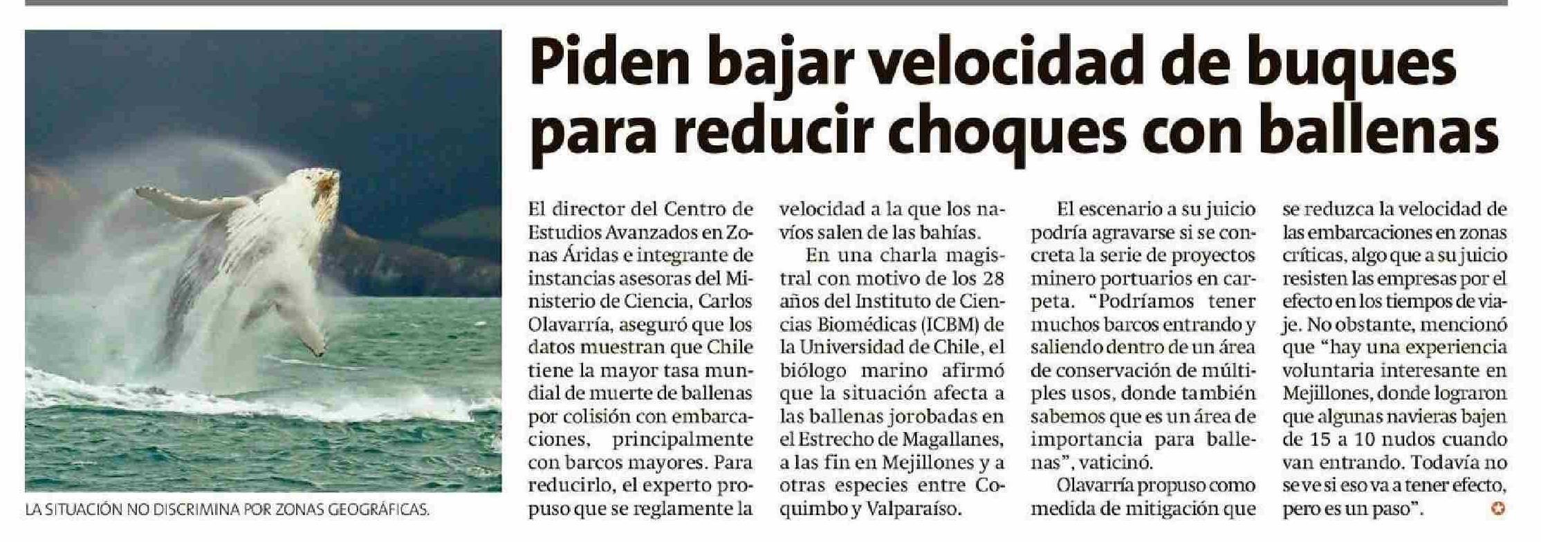 Título: Piden bajar velocidad de buques para reducir choques con ballenas