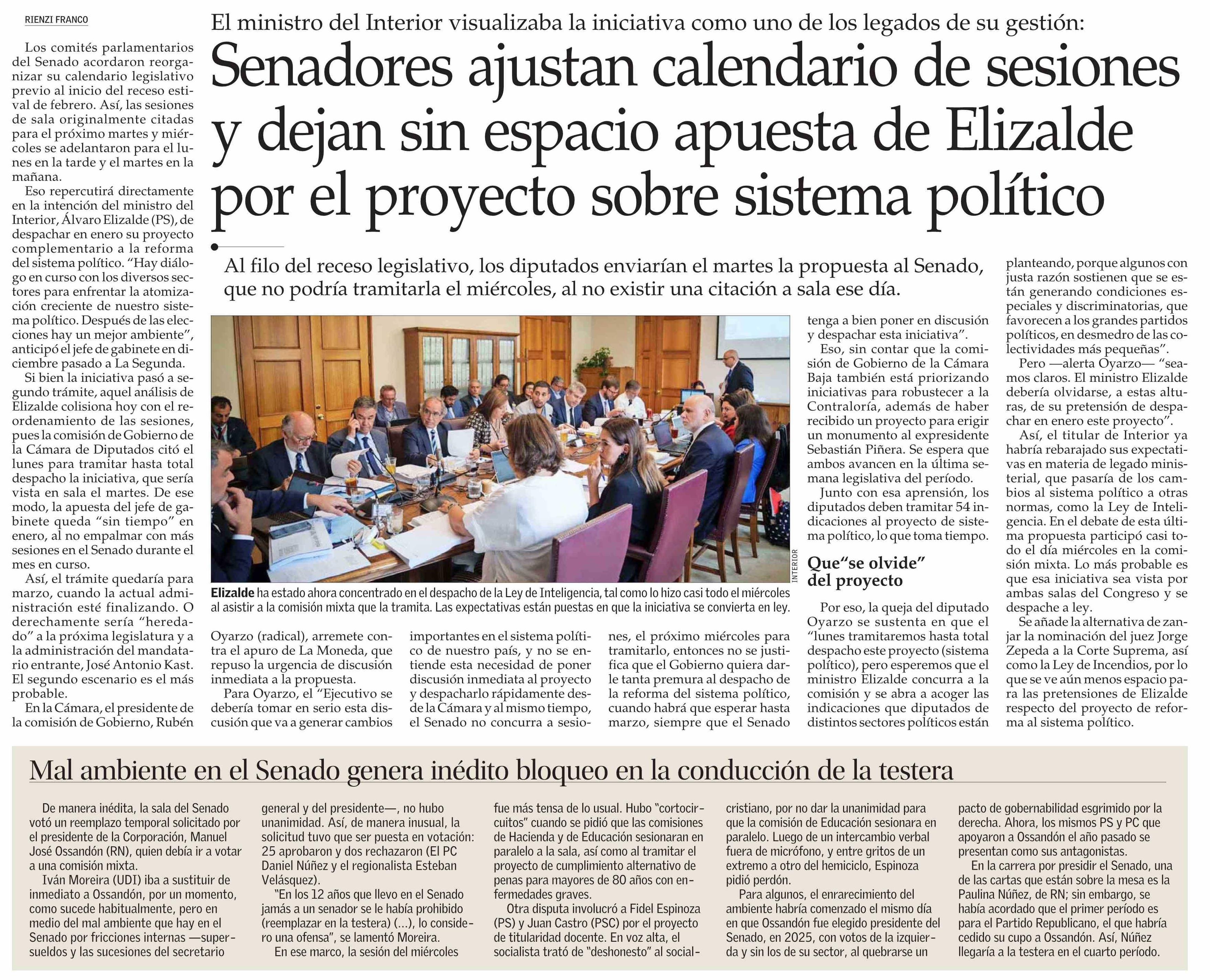 Senadores ajustan calendario de sesiones y dejan sin espacio apuesta de Elizalde por el proyecto sobre sistema político