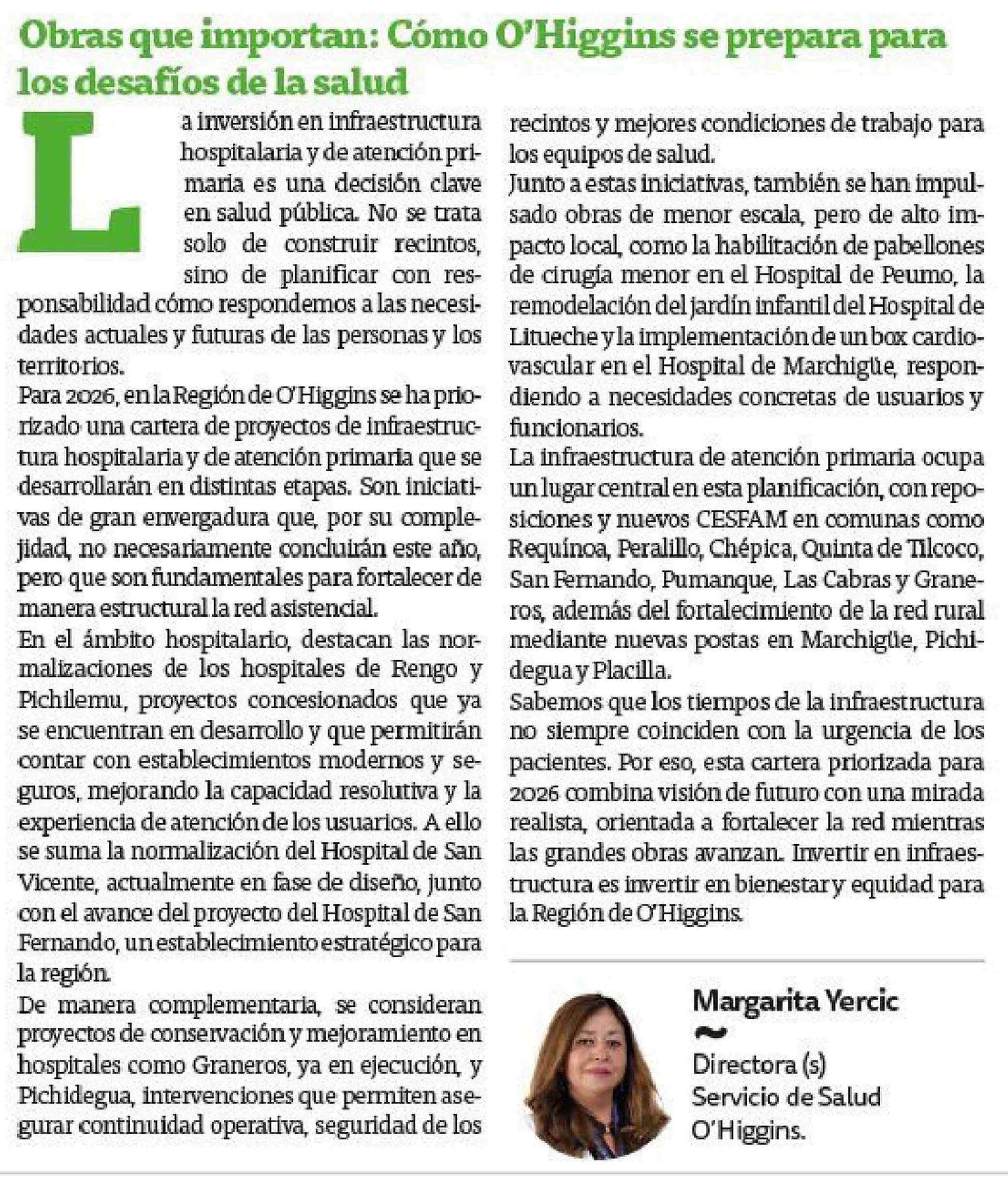 Columnas de Opinión: Obras que importan: Cómo O'Higgins se prepara para los desafíos de la salud