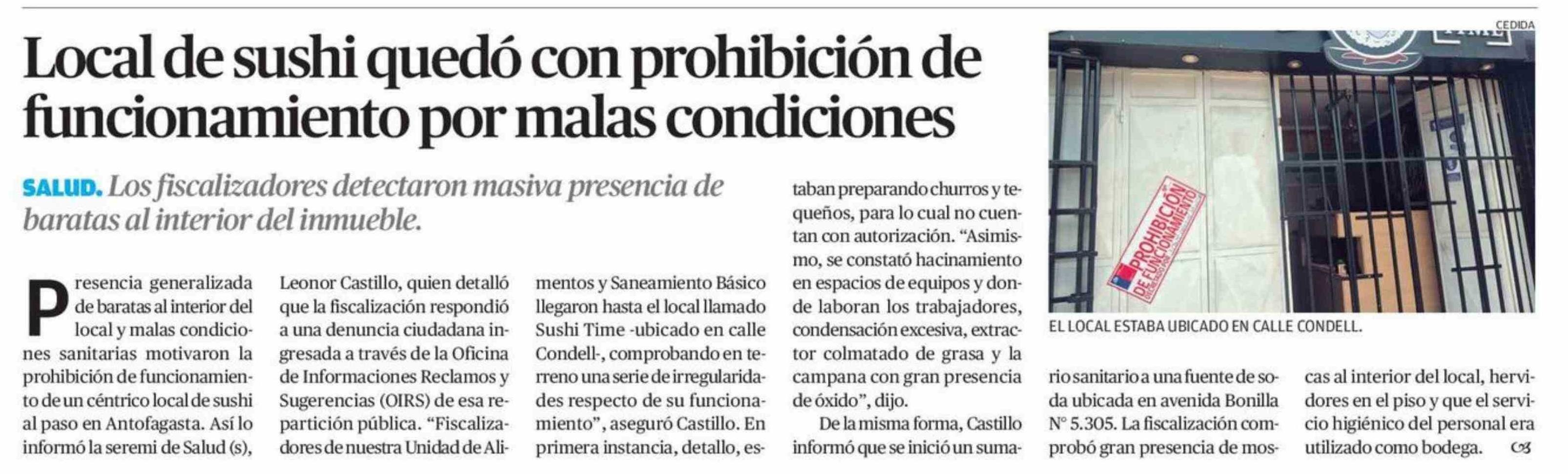 Local de sushi quedó con prohibición de funcionamiento por malas condiciones
