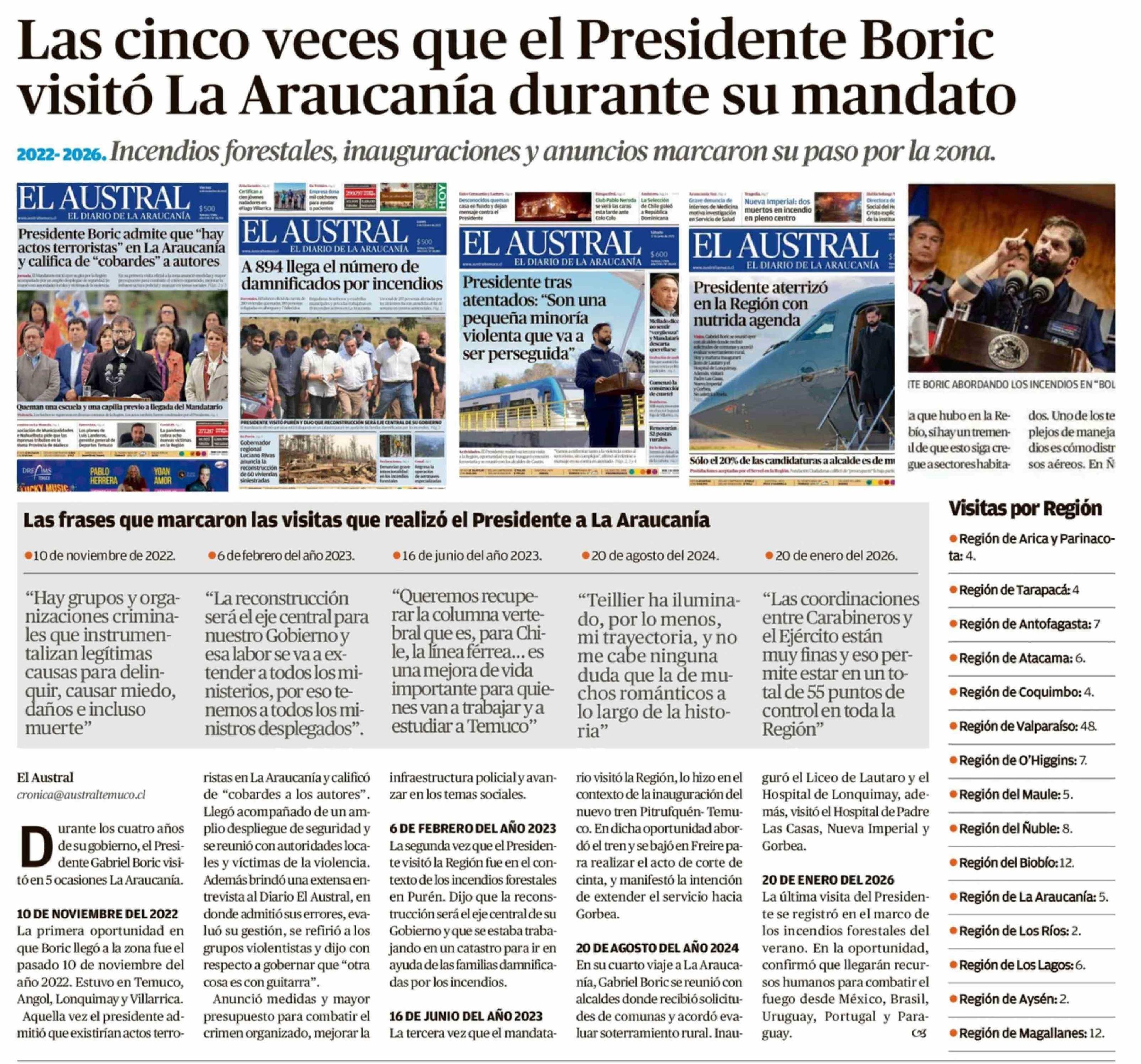 Las cinco veces que el Presidente Boric visitó La Araucanía durante su mandato