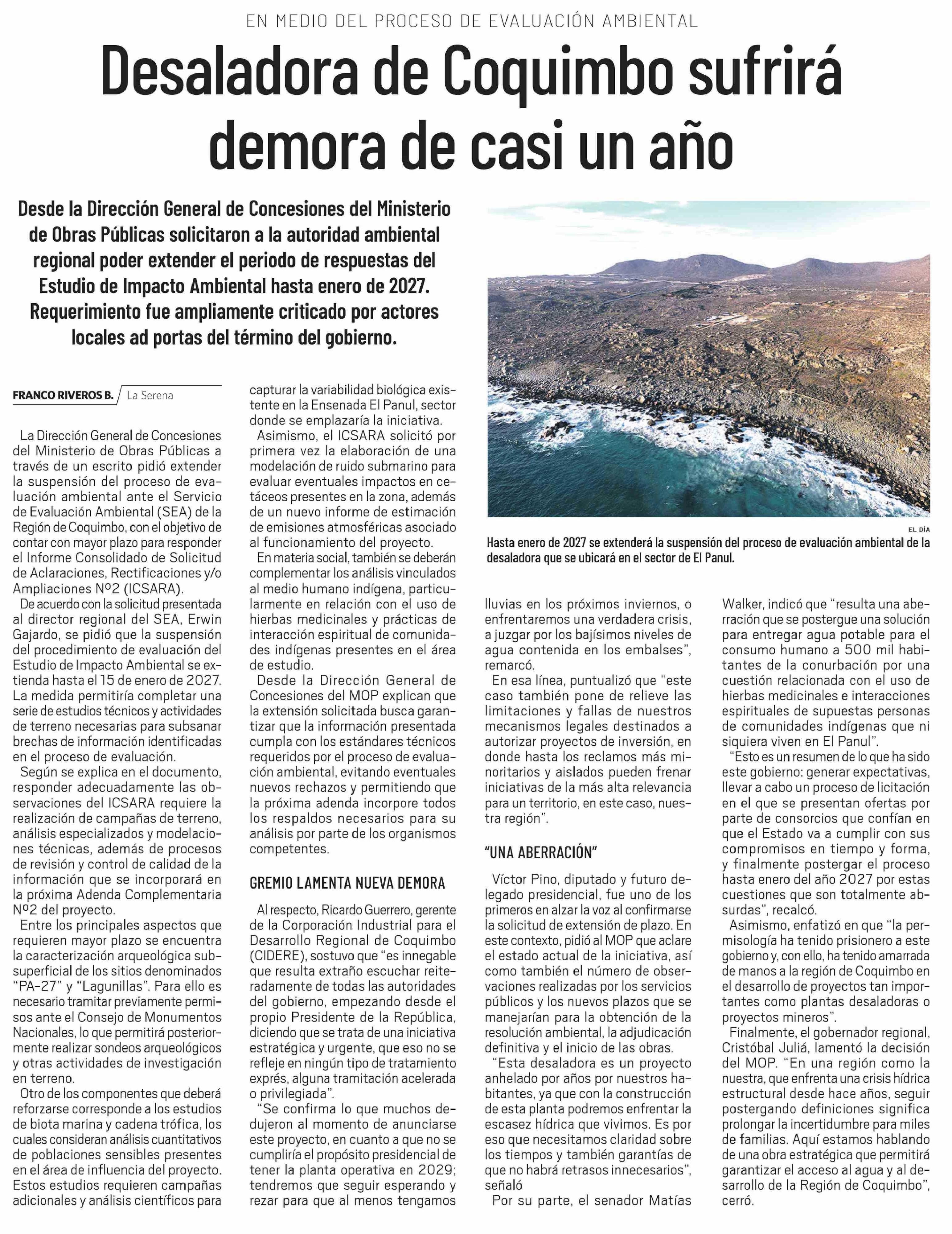 Título: Desaladora de Coquimbo sufrirá demora de casi un año
