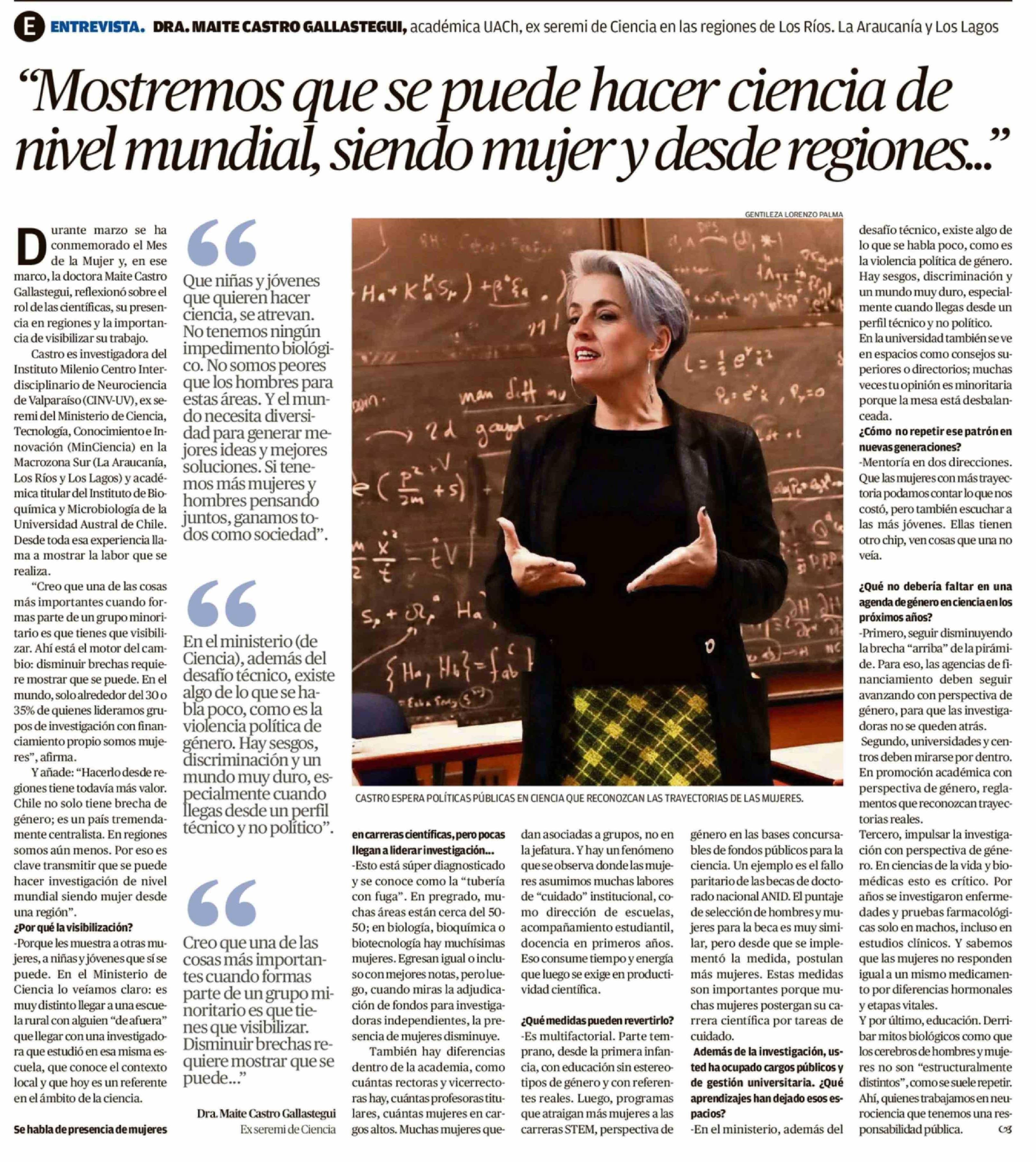 "Mostremos que se puede hacer ciencia de nivel mundial, siendo mujer y desde regiones ... "