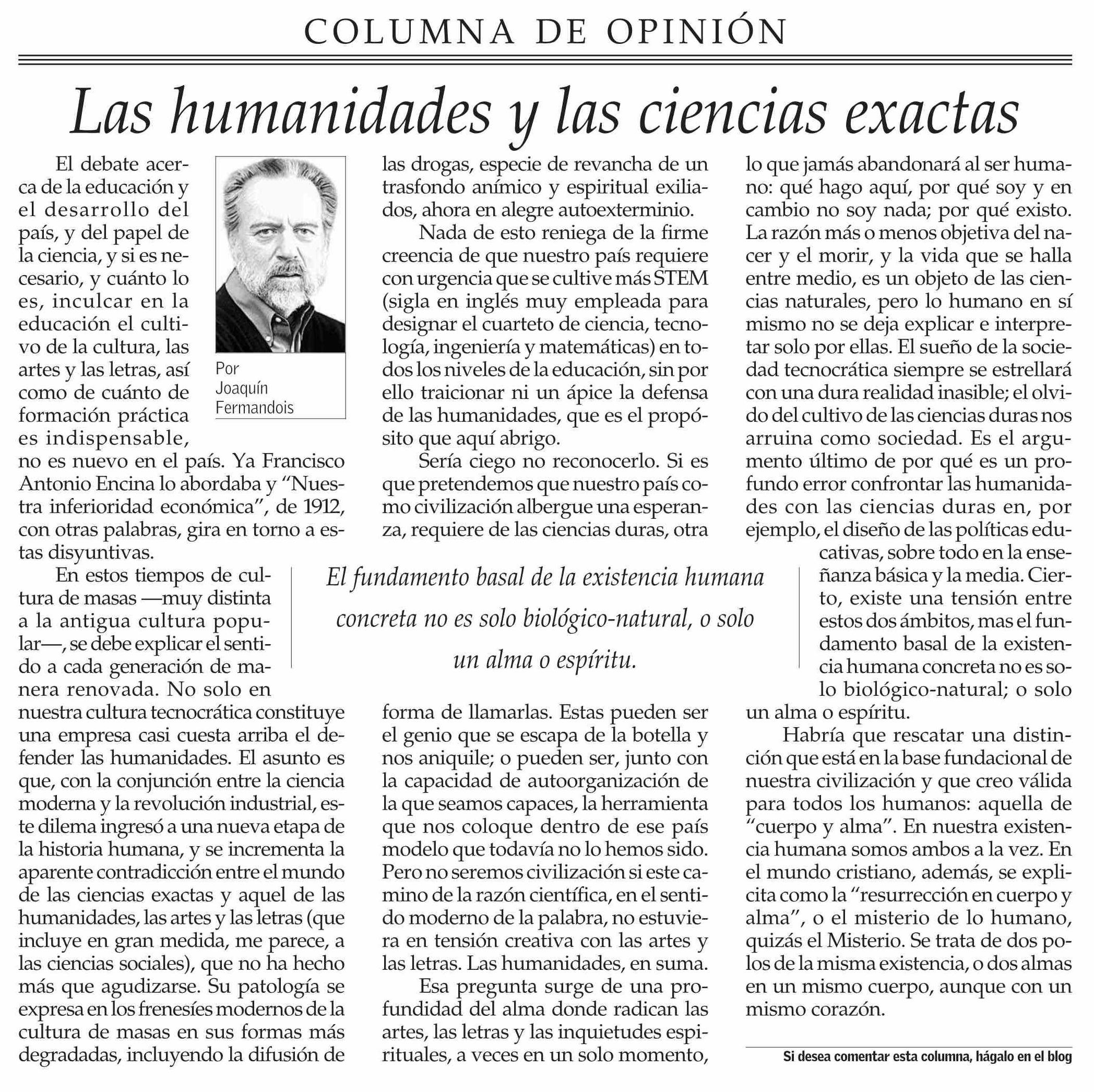 Columnas de Opinión: Las humanidades y las ciencias exactas