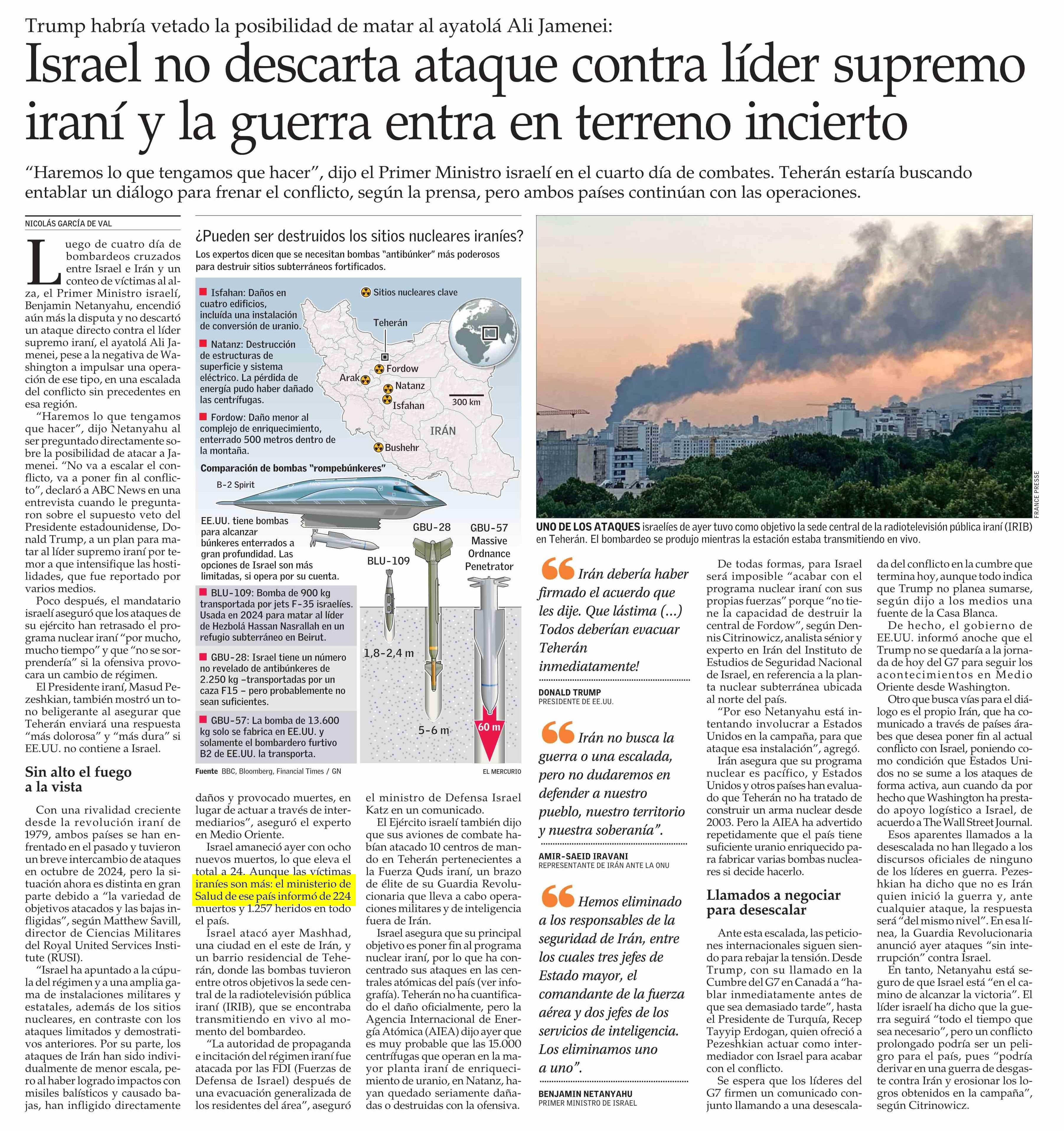 Israel no descarta ataque contra líder supremo iraní y la guerra entra en terreno incierto
