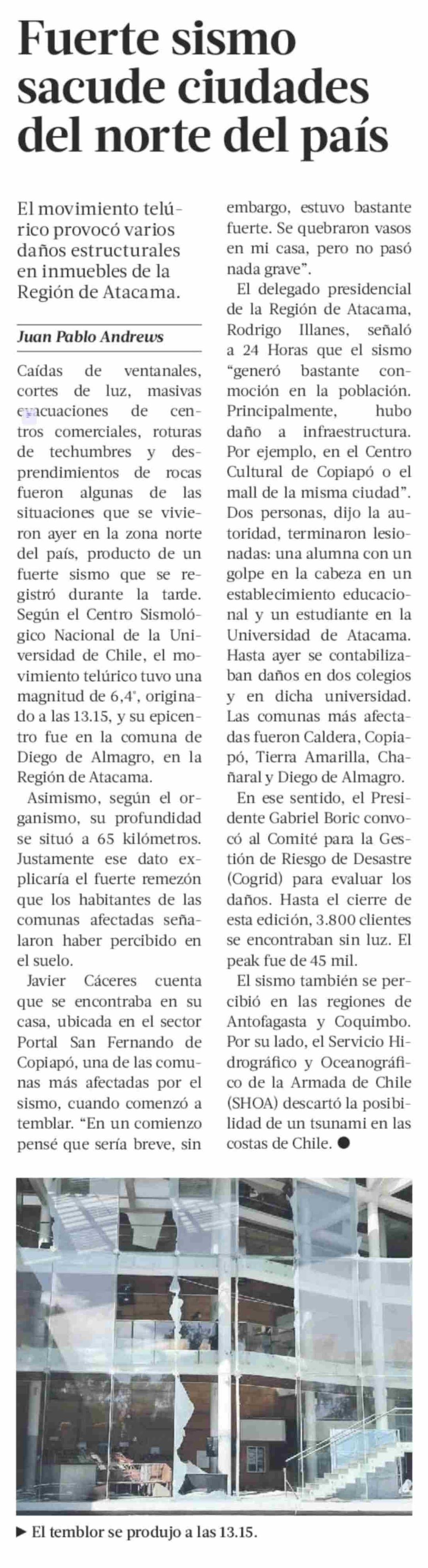 Fuerte sismo sacude ciudades del norte del país