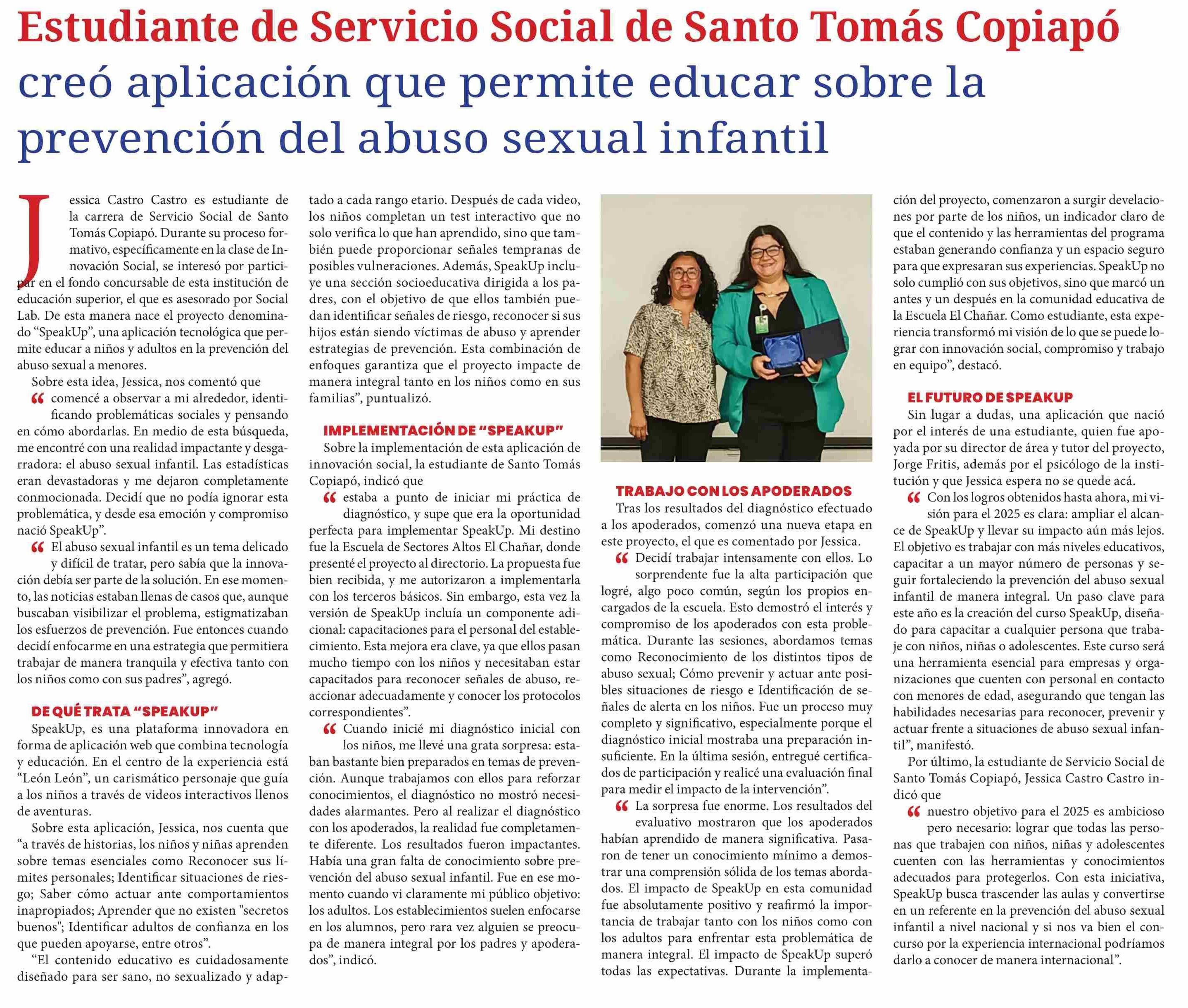 Estudiante de Servicio Social de Santo Tomás Copiapó creó aplicación que permite educar sobre la prevención del abuso sexual infantil