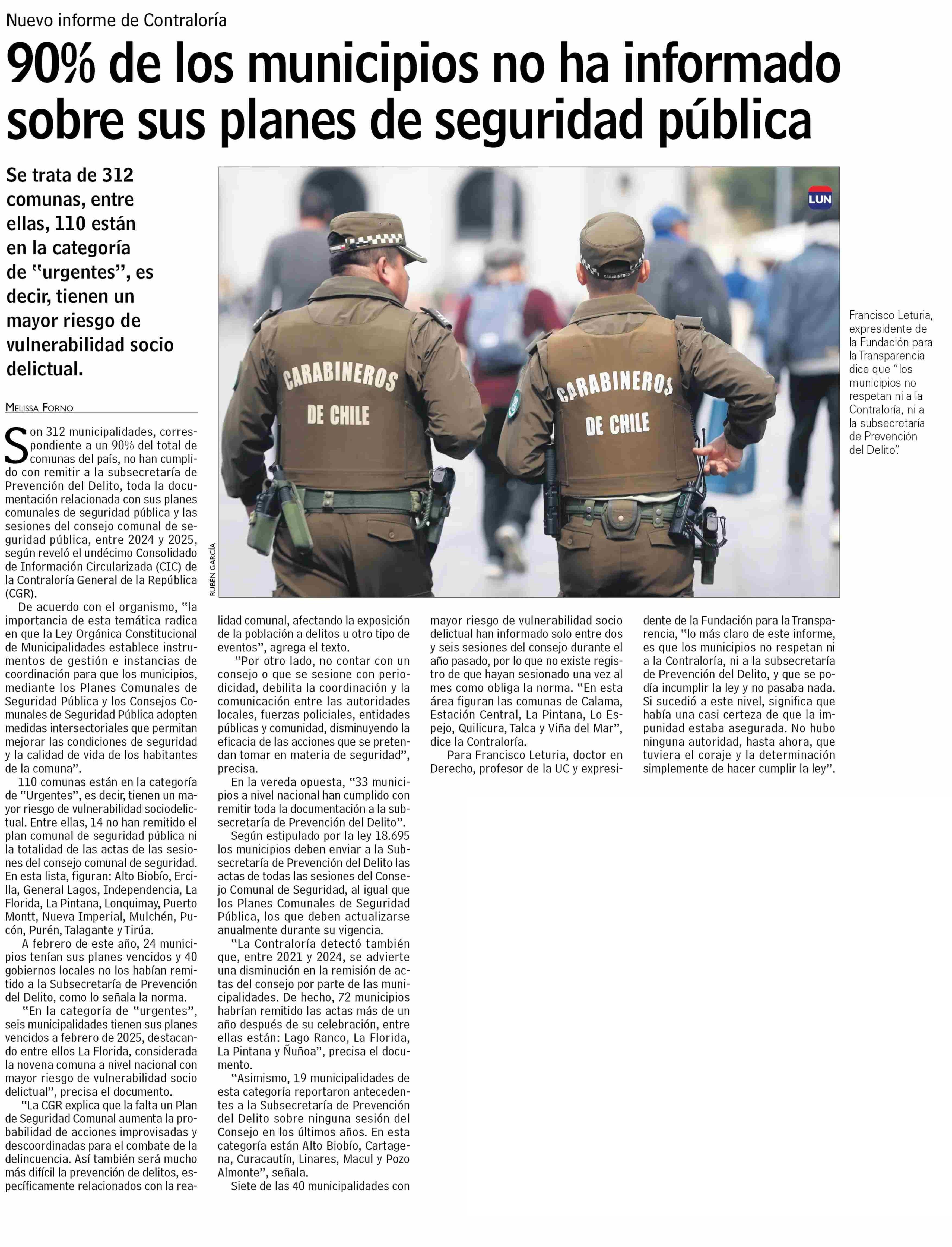90% de los municipios no ha informado sobre sus planes de seguridad pública