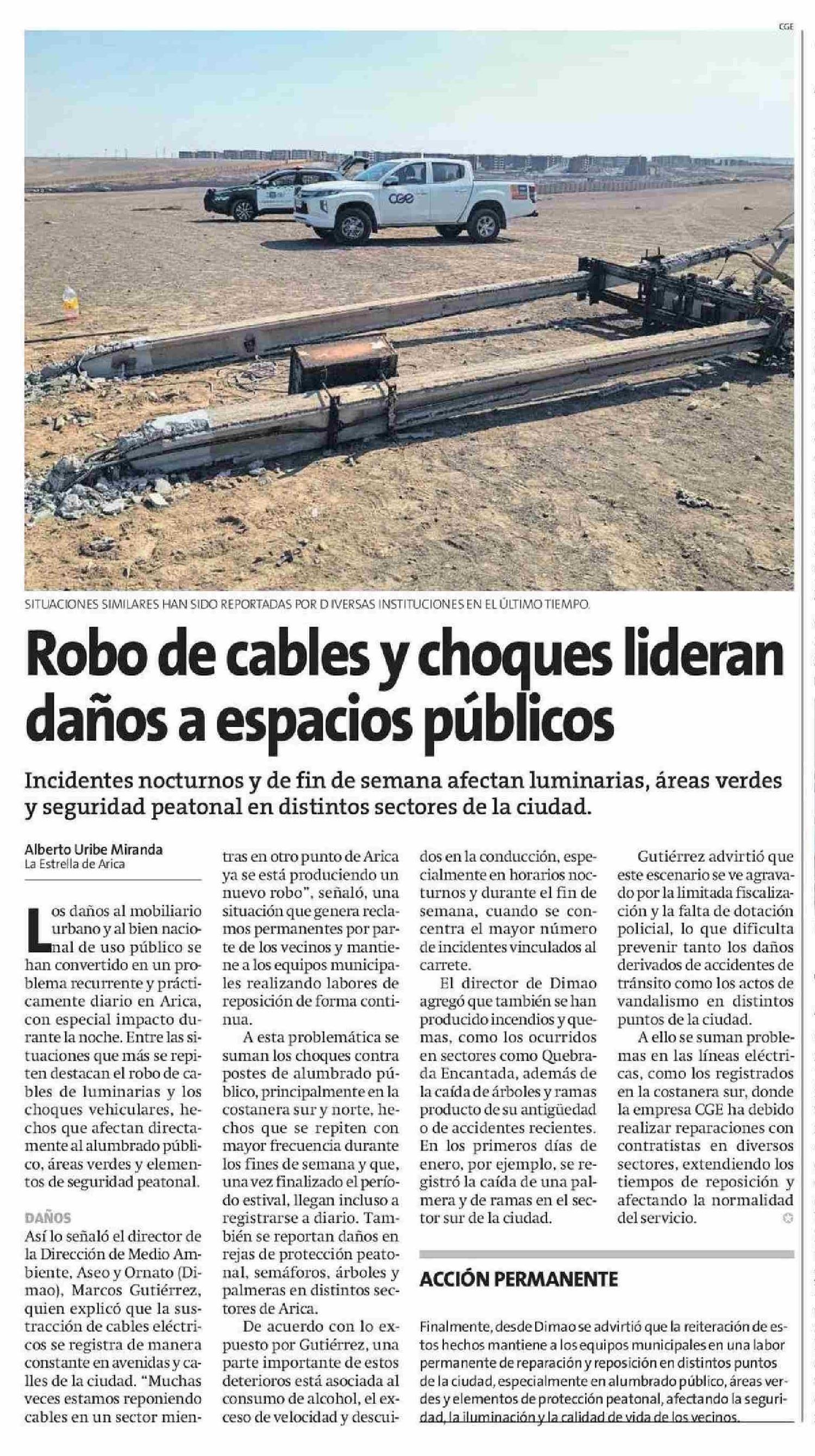Robo de cables y choques lideran daños a espacios públicos