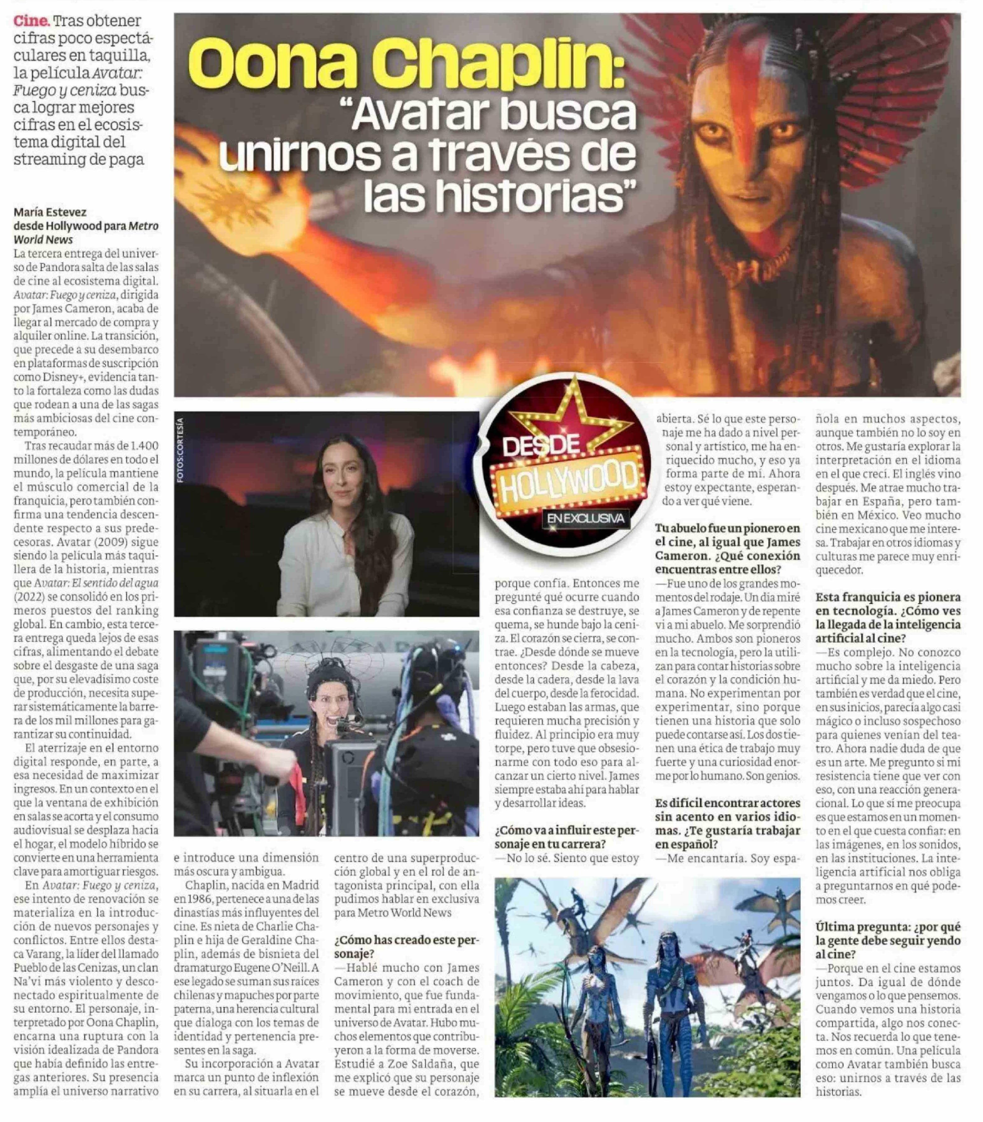 Oona Chaplin: "Avatar busca unirnos a través de las historias"
