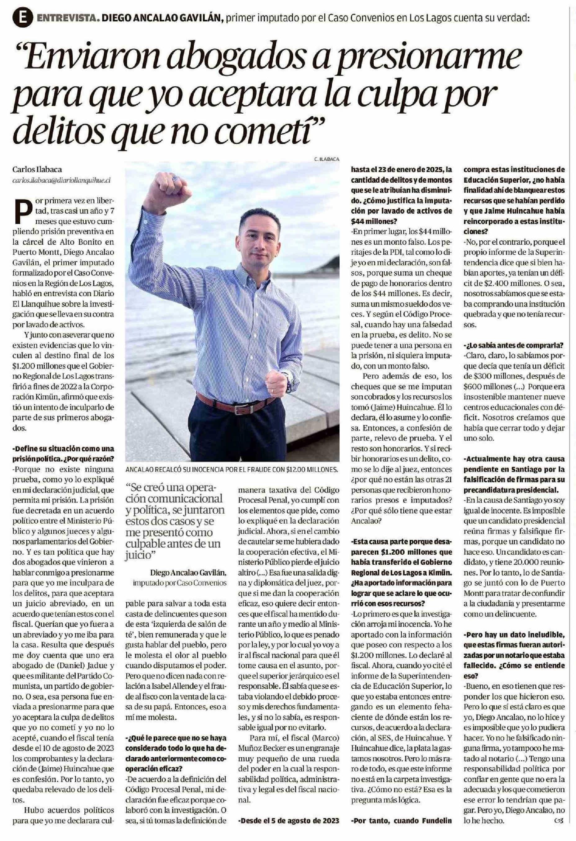 “Enviaron abogados a presionarme para que yo aceptara la culpa por delitos que no cometí”