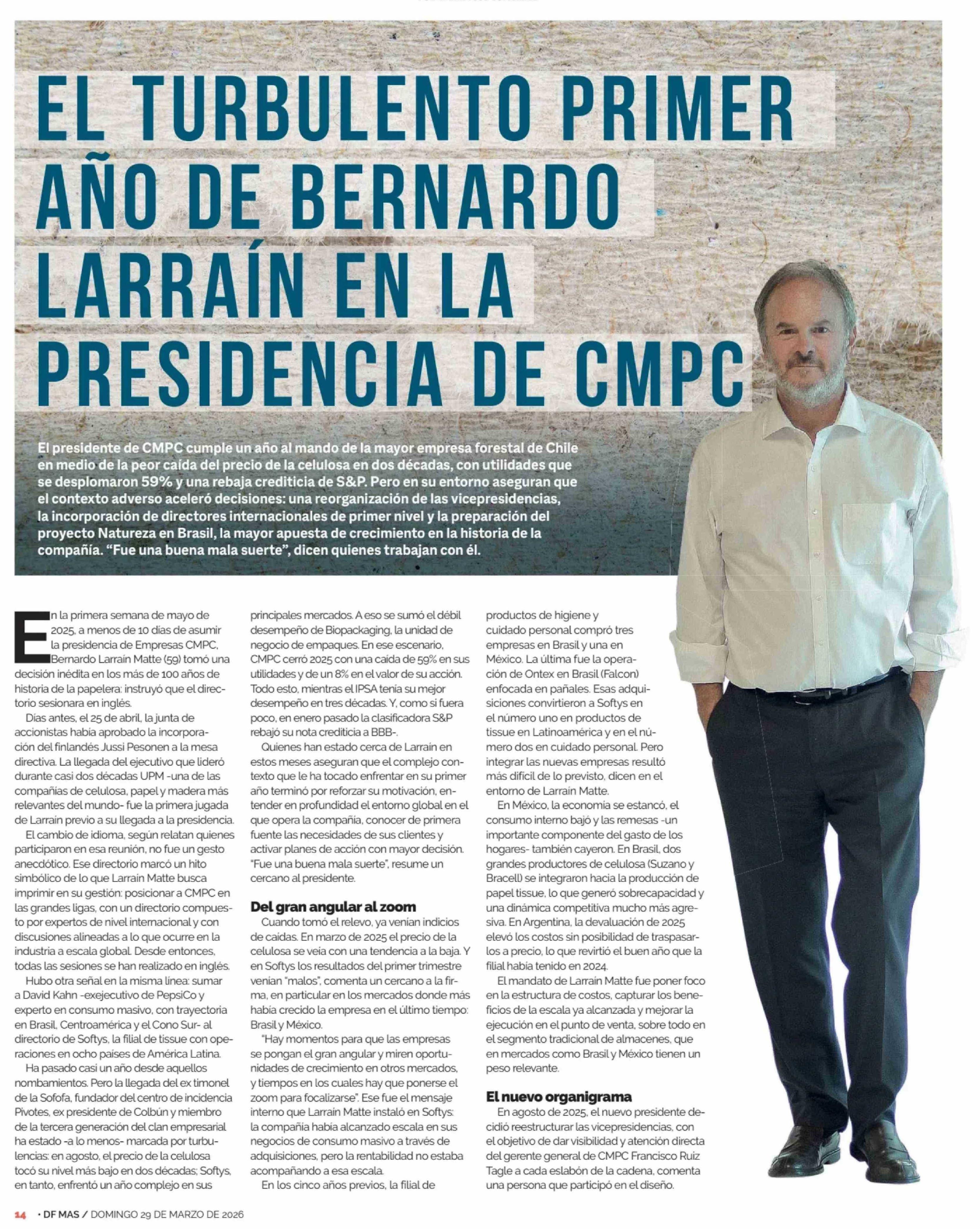 EL TURBULENTO PRIMER AÑO DE BERNARDO LARRAÍN EN LA PRESIDENCIA DE CMPC