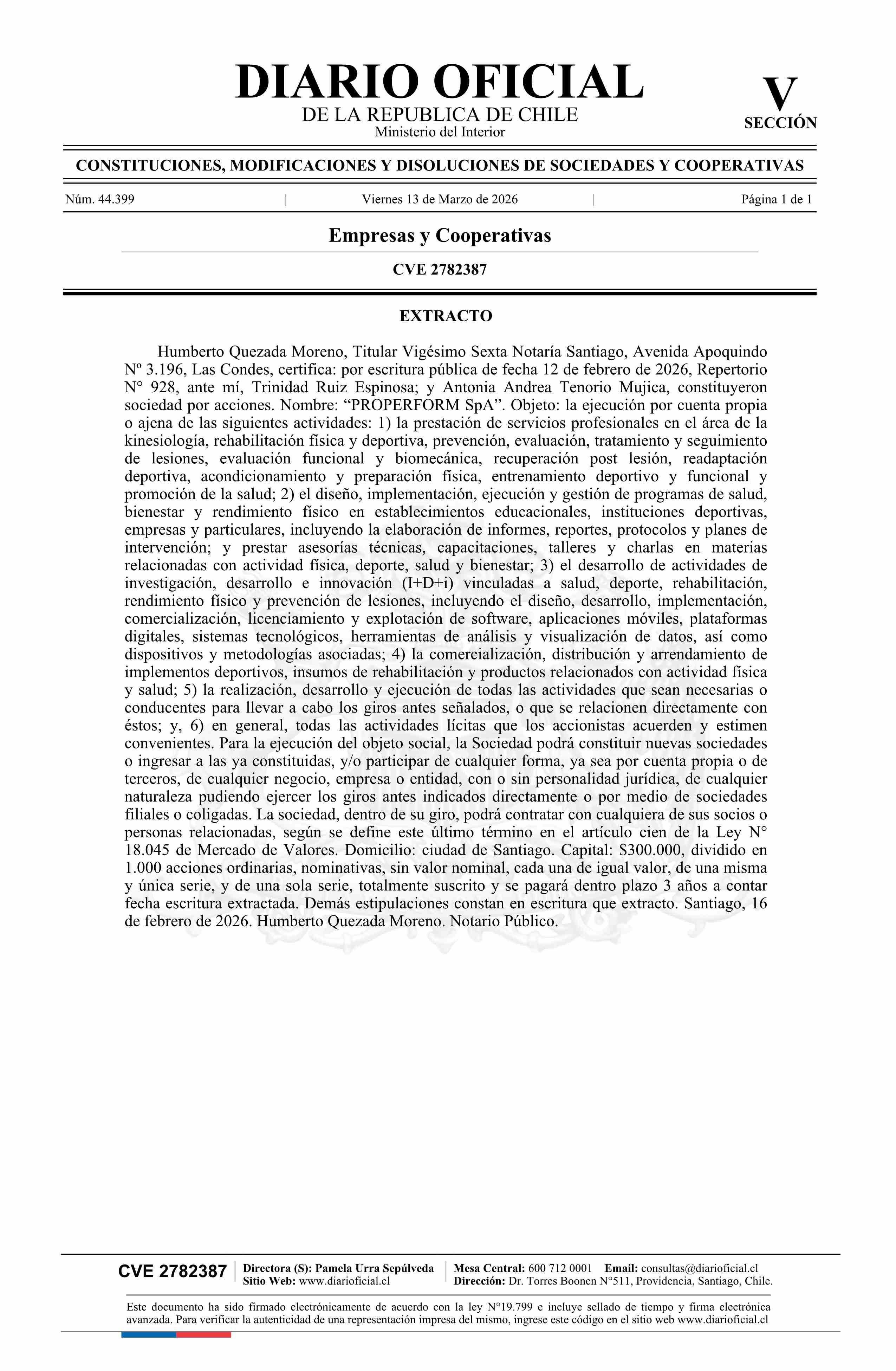 Diario Oficial Edición Electrónica (Diario Oficial de Chile - 5 Empresas Y Cooper)