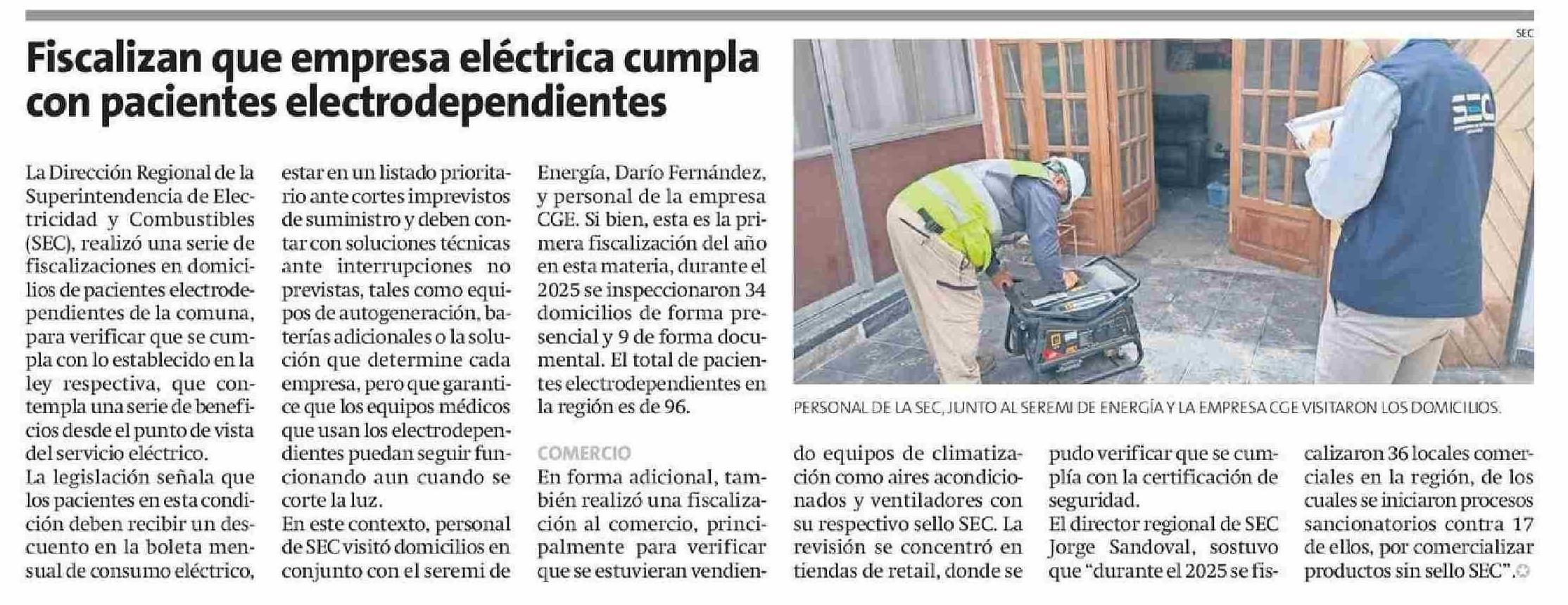 Fiscalizan que empresa eléctrica cumpla con pacientes electrodependientes