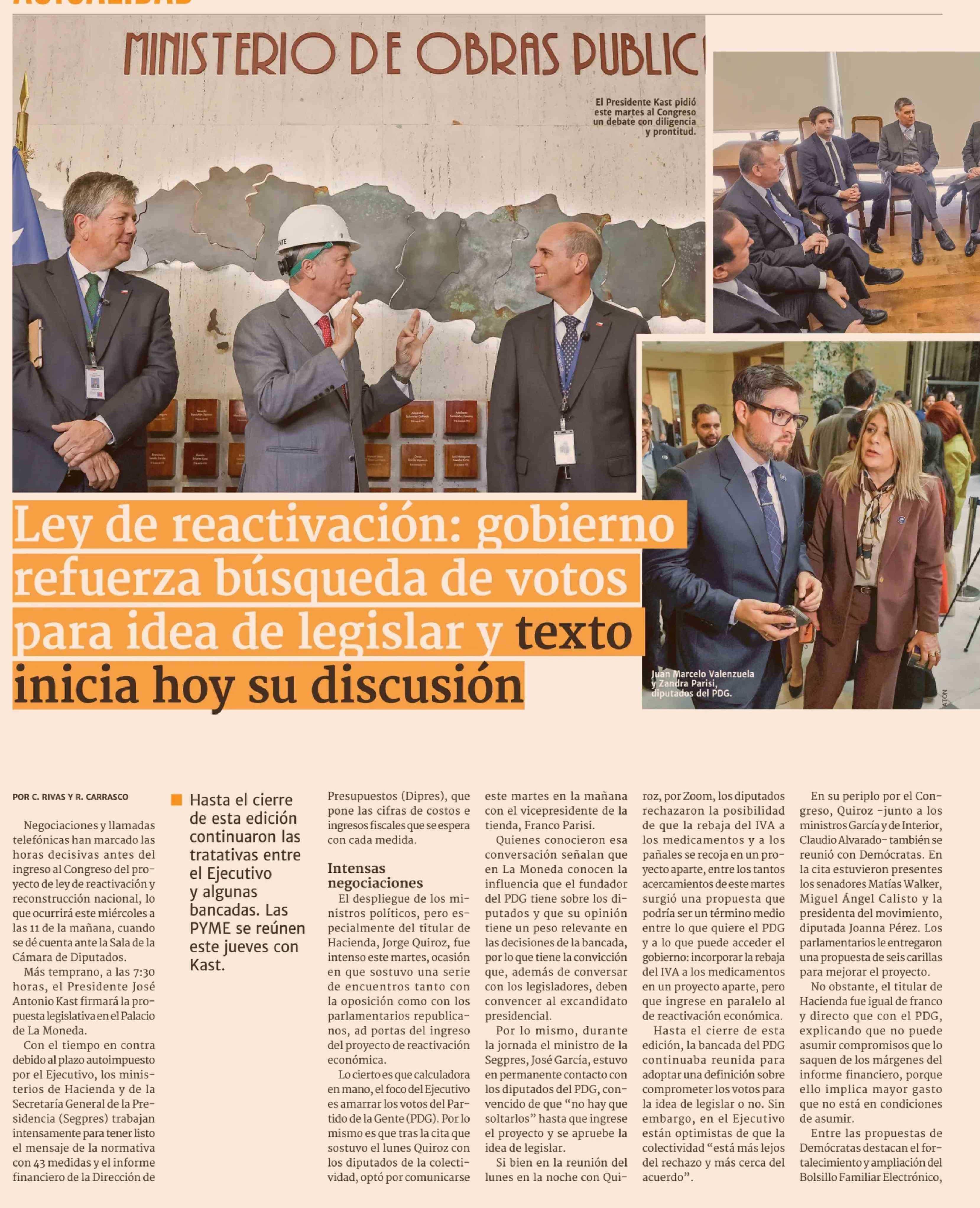 Ley de reactivación: gobierno refuerza búsqueda de votos para idea de legislar y texto inicia hoy su discusión