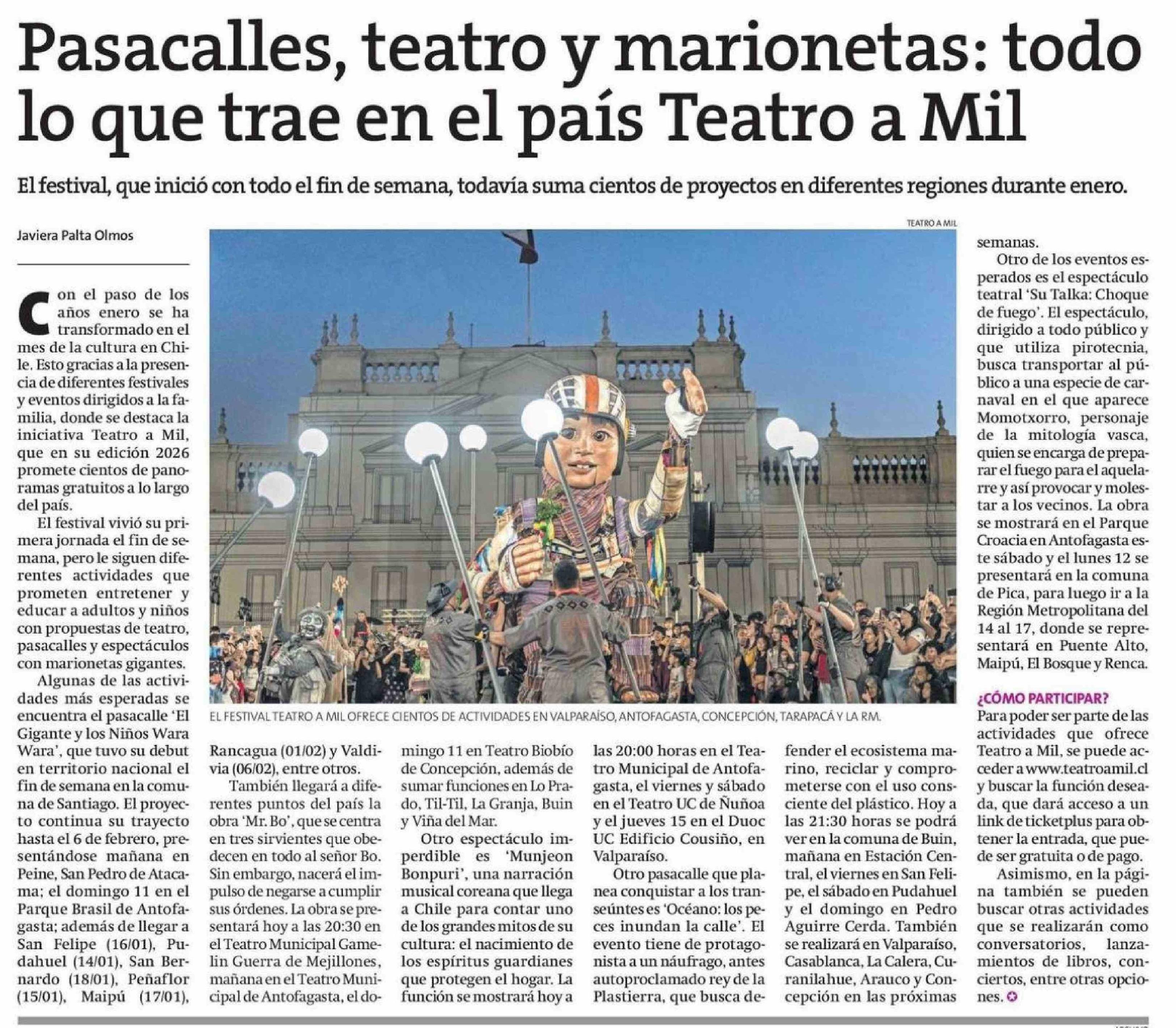 Pasacalles, teatro y marionetas: todo lo que trae en el país Teatro a Mil
