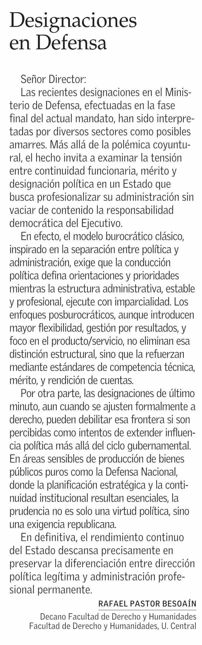 Cartas: Designaciones en Defensa