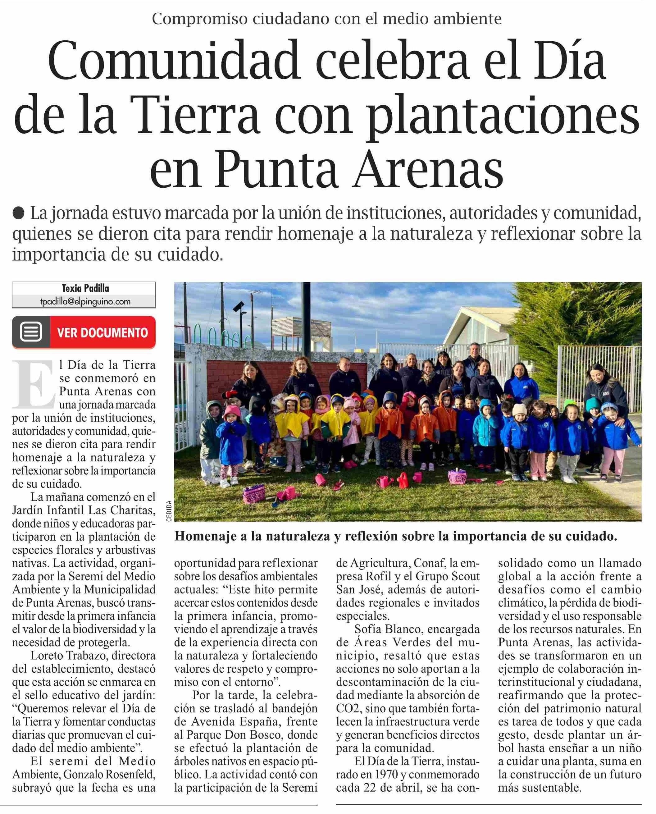 Comunidad celebra el Día de la Tierra con plantaciones en Punta Arenas