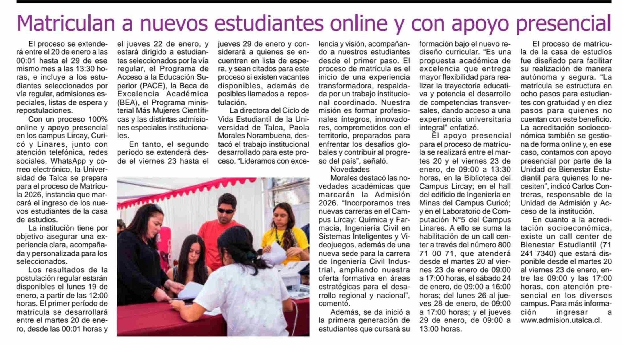 Matriculan a nuevos estudiantes online y con apoyo presendal