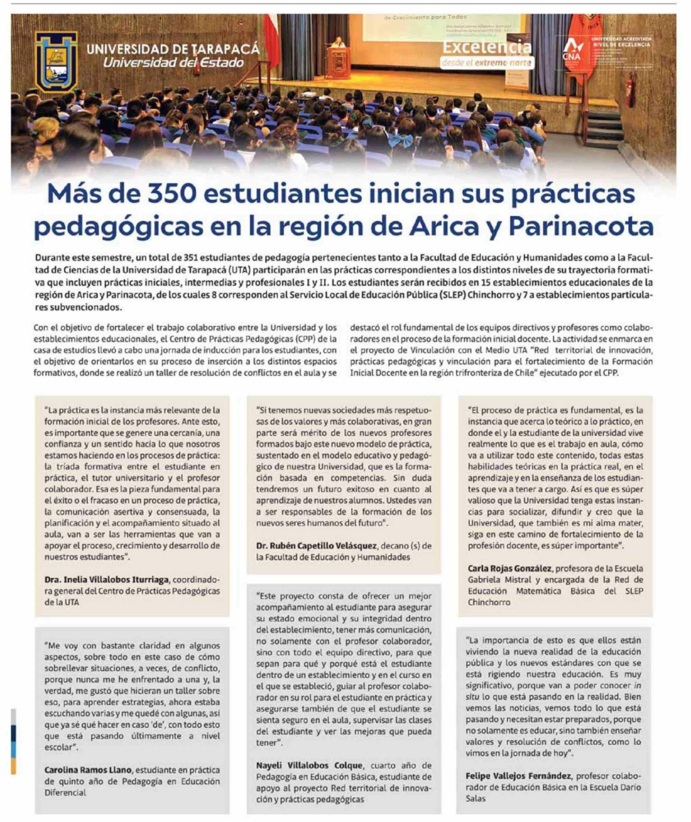 Título: Más de 30 estudiantes inician sus prácticas pedagógicas en la región de Arica y Pariancota
