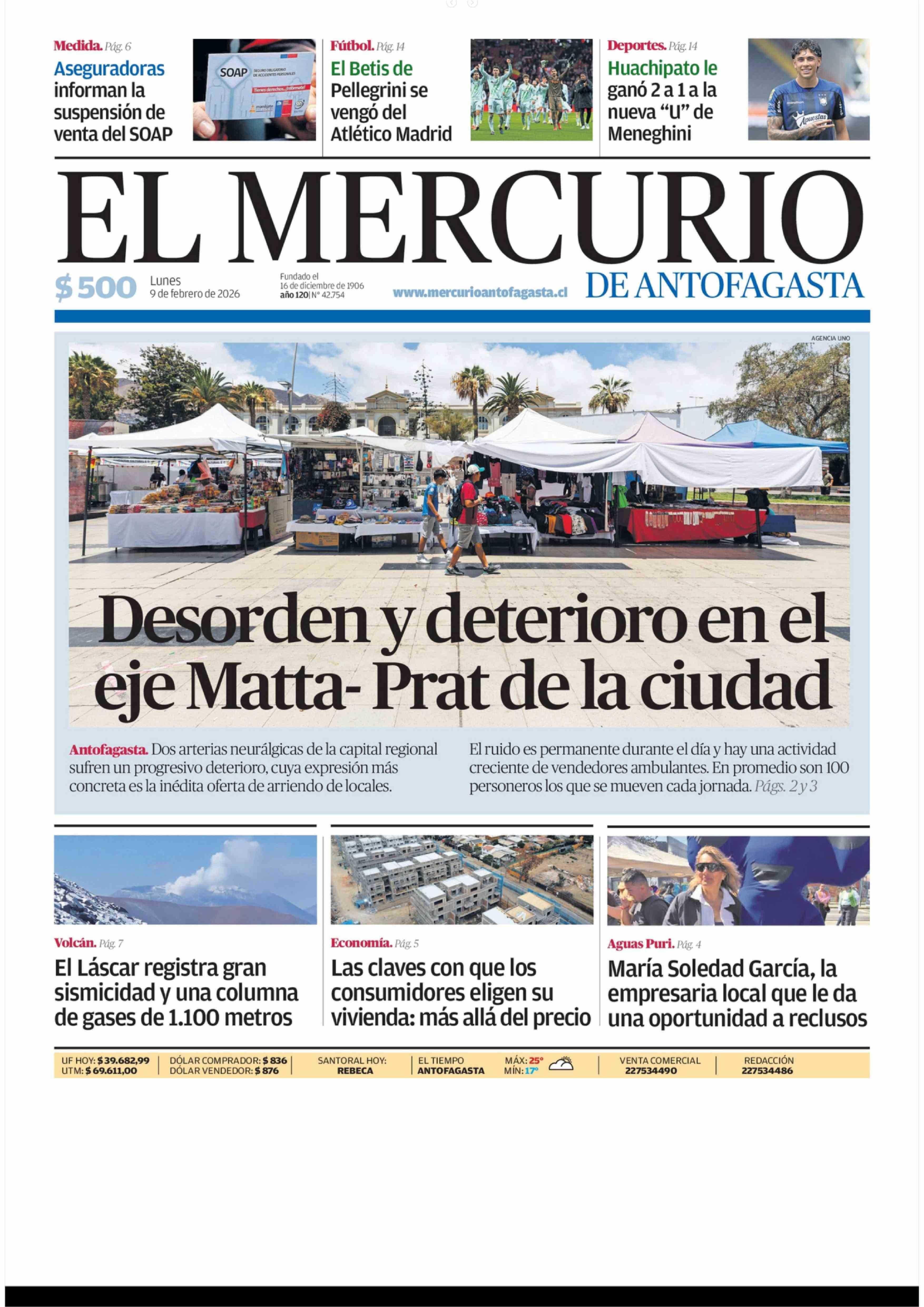 PORTADA EL MERCURIO DE ANTOFAGASTA CHILE