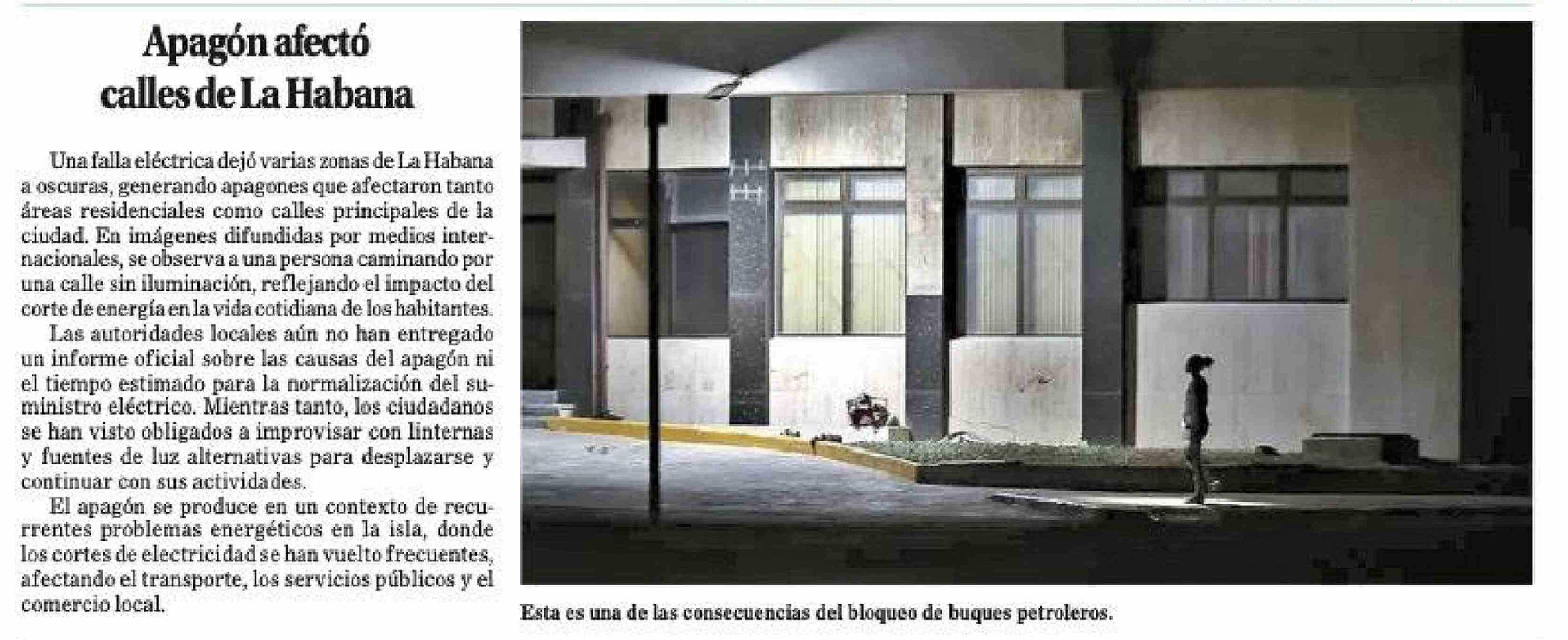 Apagón afectó calles de La Habana