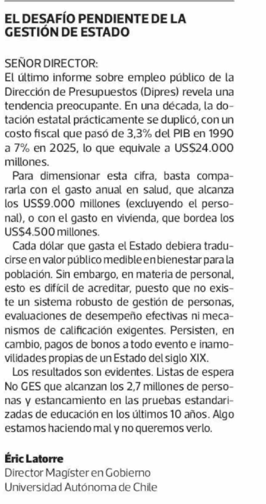 CARTAS: EL DESAFÍO PENDIENTE DE LA GESTIÓN DE ESTADO