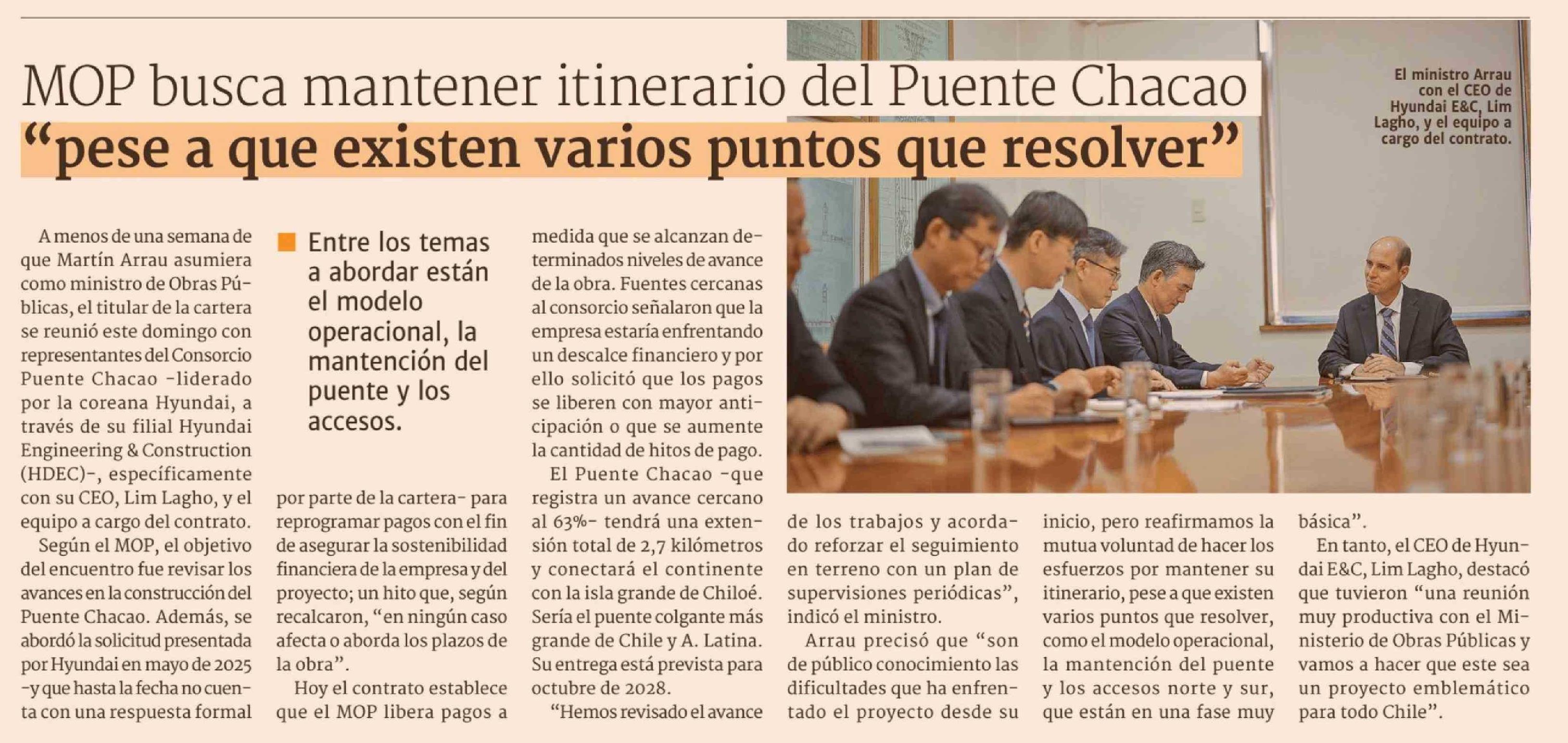MOP busca mantener itinerario del Puente Chacao "pese a que existen varios puntos que resolver"