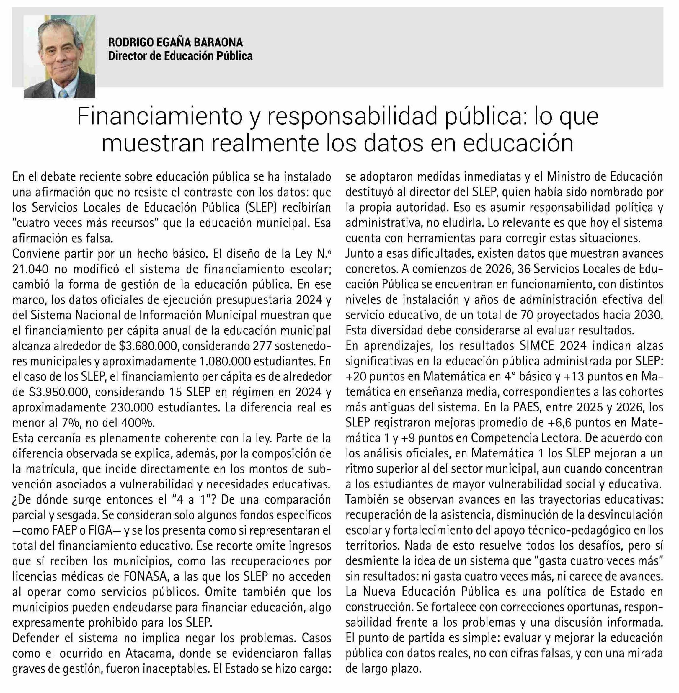 Columnas de Opinión: Financiamiento y responsabilidad pública: lo que muestran realmente los datos en educación