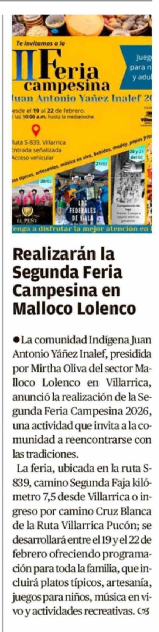 Realizarán la Segunda Feria Campesina en Malloco Lolenco