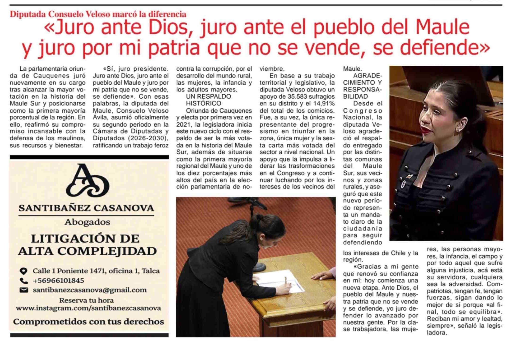 Título: «Juro ante Dios, juro ante el pueblo del Maule y juro por mi patria que no se vende, se defiende»