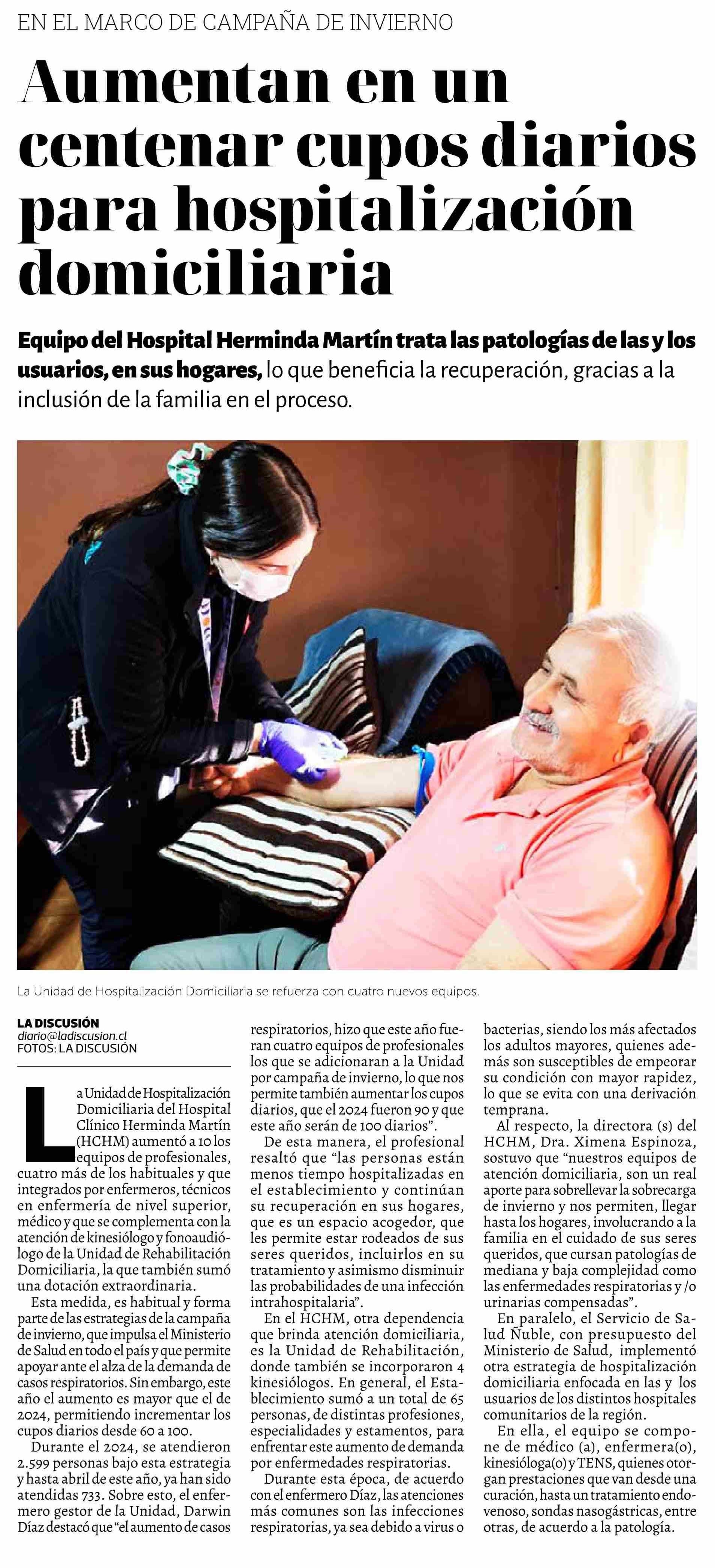 Aumentan en un centenar cupos diarios para hospitalización domiciliaria